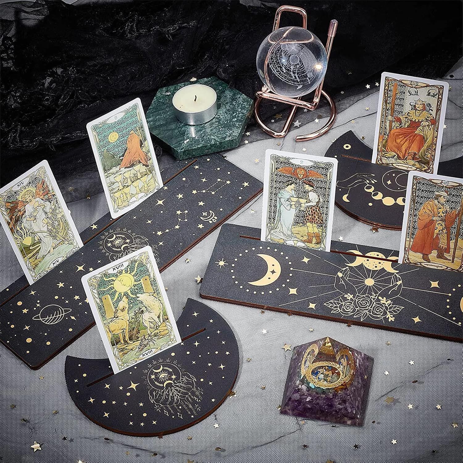 Moon Shape and Rectangle Cards Holder for Witch Divinations Tools Wood Tarot Cards Stand Holder Moon Phases Altar Base tarot card display stand wood tarot card holder rack tarot card base tarot card holder