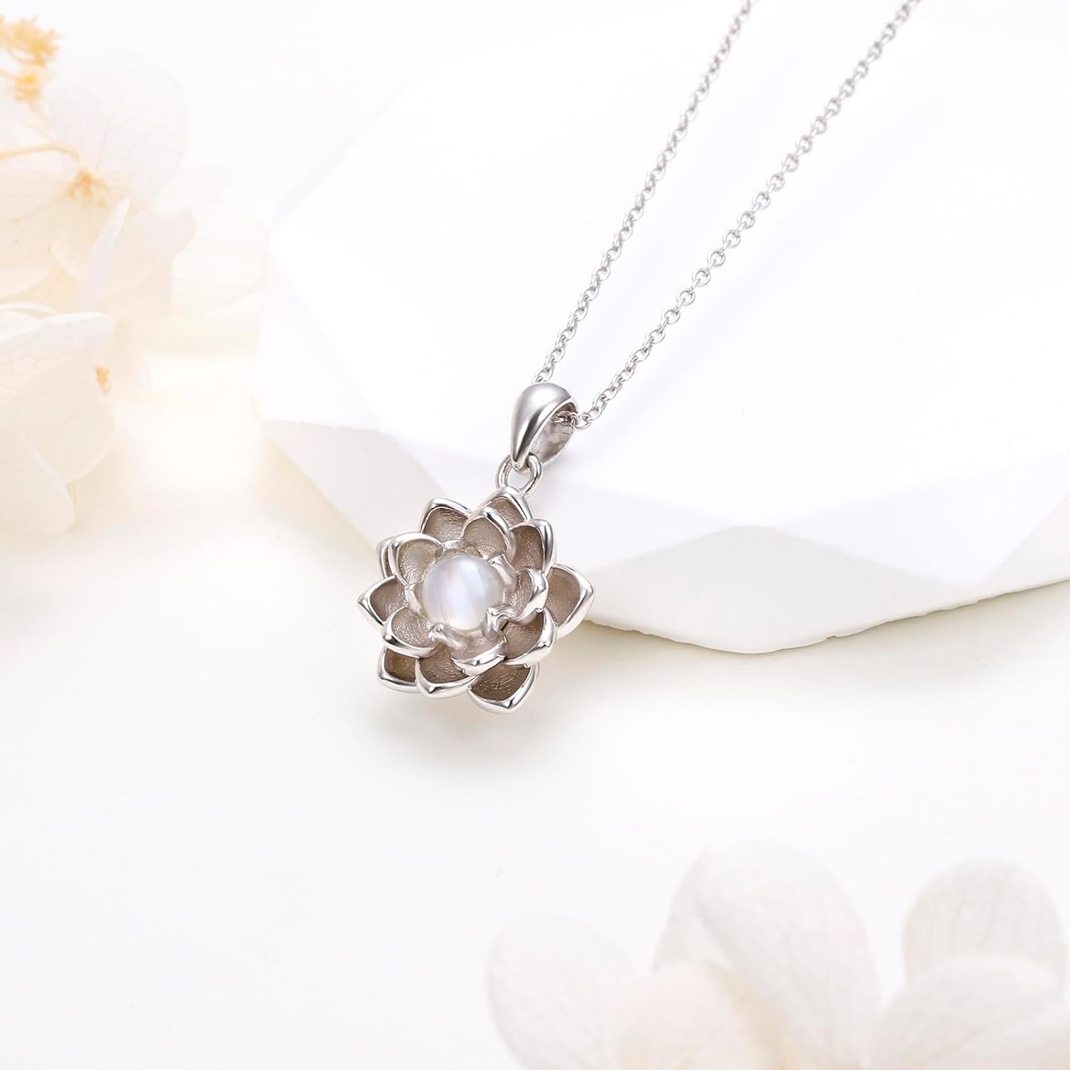 Moonstone Lotus Jewelry Set, Sterling Silver Lotus Flower Ring Engraved True Love Waits, Natural Healing Buddha Spiritual Yoga Lotus Jewelry Set Gifts for Women
