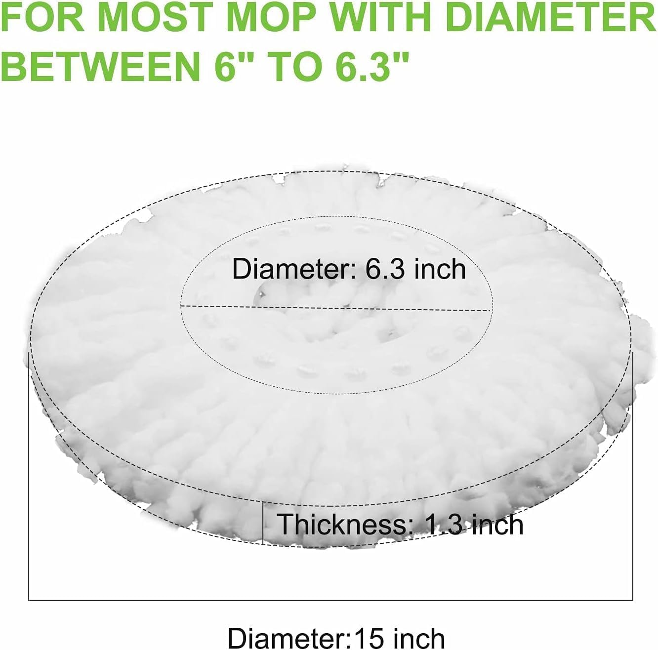 Universal Size – Our mop heads fit most mop with diameter between 6″ to 6.3″. Our mop head’s plastic dome has diameter of 6.3″, Our special design make the head more stable while you cleaning. Please measure your mop’s diameter before purchase.
