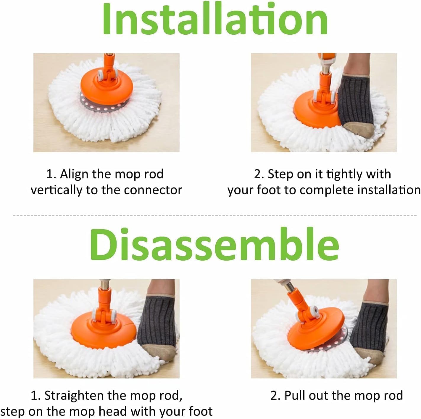 Easy To Install – Follow the picture instruction to socket it on to your mop, easy to attach and sturdy after install properly.