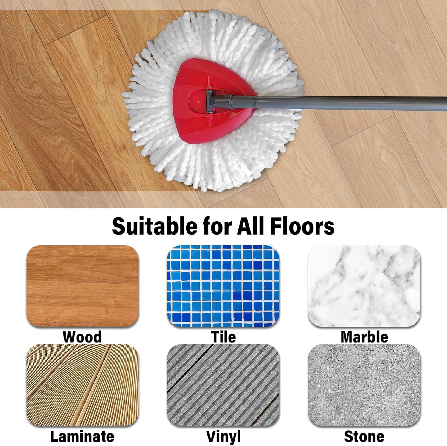 Multiple Occasions: Our mop head replacements perfet for wooden floors, ceramic tile, laminate floors, marble floors, wash cars and so on. especially clean walls or other places covered with dust efficiently