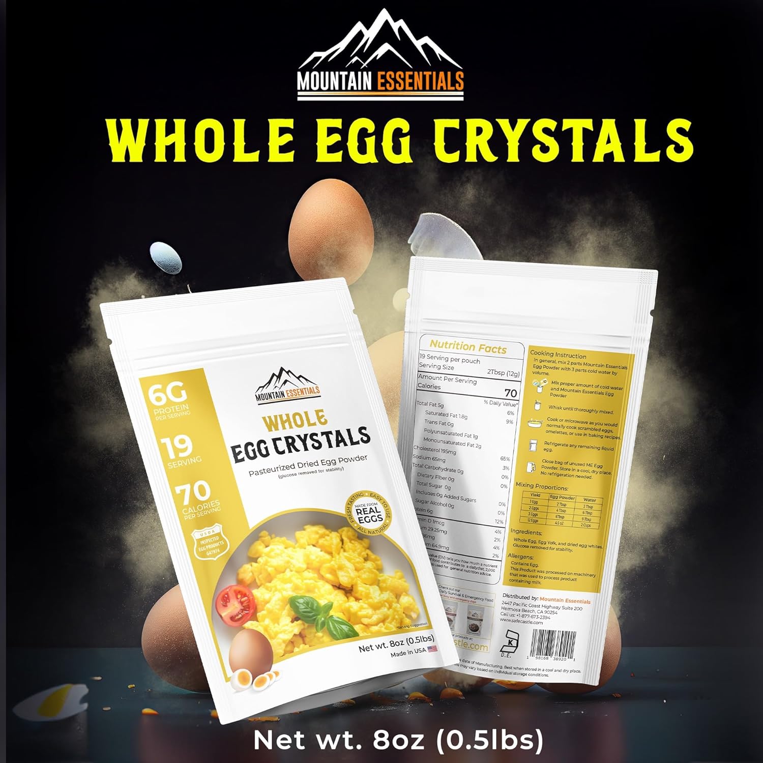 MOUNTAIN ESSENTIALS Whole Egg Crystals Pasteurized Dried Egg Powder 8 Oz Great for Breakfast and Camping Meals | Baking & Cooking Supplies Survival Shelf Stable Food 19 Servings Per Pouch Pack of 1
