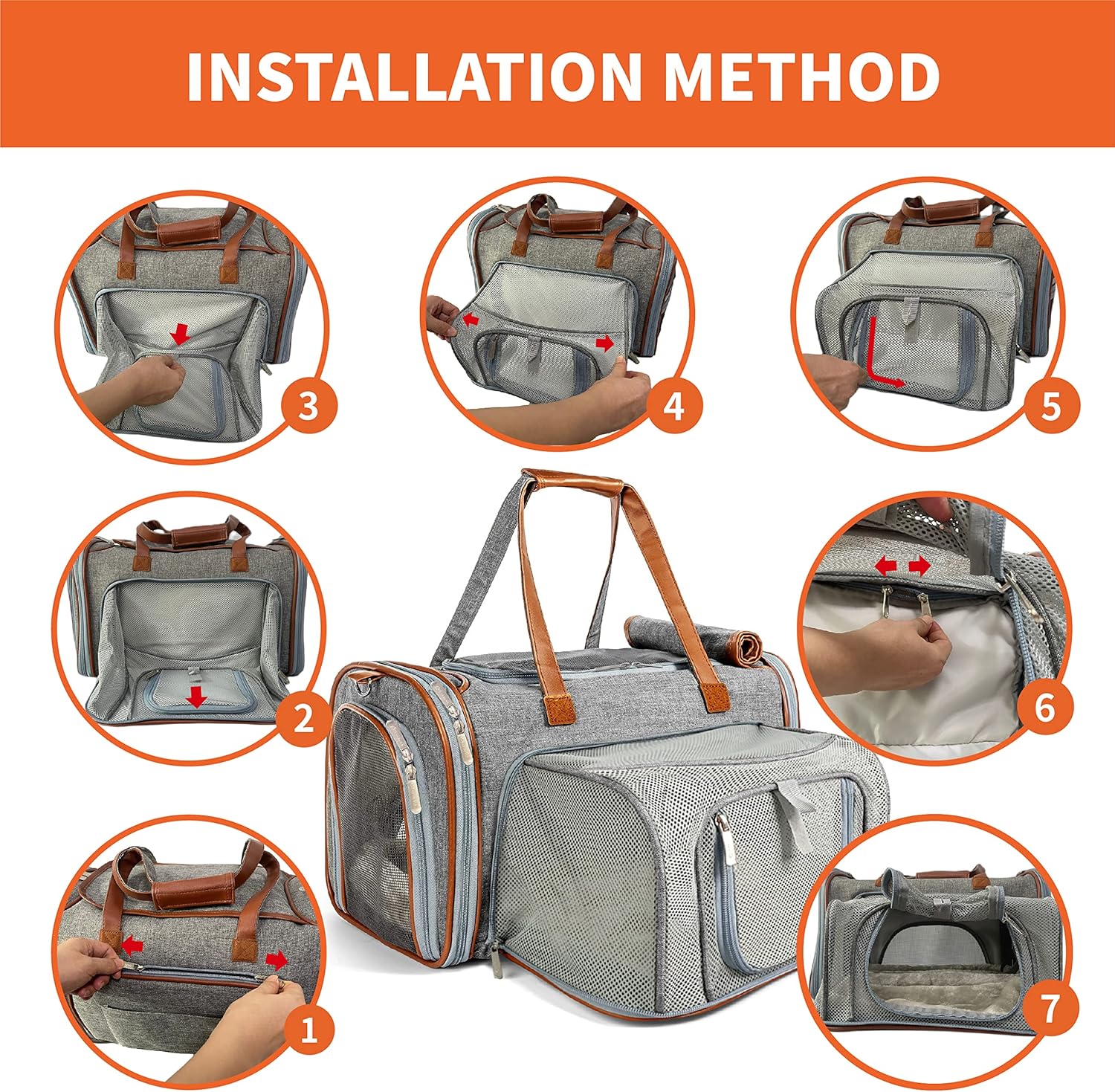 Zippers – These are one of my pet peeves as the zipper quality can turn a fantastic carrier into a loser very fast. When the zipper breaks at the airport or even in your car your carrier of choice becomes basically worthless. Make sure the brand you are looking at includes hi quality zippers from a reputable zipper brand. My totes are all designed with only premium brand zippers, and I improve and upgrade them often as new and better versions come along including the automatic self locking zippers which cannot be opened from inside that are used on this Gold Series tote. It’s much better than the older style clasps which are fragile and unreliable. What Are Self Locking Zippers and Why Do I Want Them? – About 18 months ago I switched my entire line up of carriers to self locking zippers. Self locking zippers are zippers which are designed in a way that they cannot be pushed open from the inside of the bag. I switched the entire line from the older style locking clasps as I found over a long period of time that the clasps in both metal and plastic were fragile and not durable. The self locking zippers remove the need for clasps, and actually results in a much safer tote for pets, and users overwhelmingly prefer them as they do not have to rely on using the small unreliable clasps. The old style clasps simply do not meet my standards. I always focus firstly on pet safety and comfort, and the reason I switched all of the models to self locking zippers is exactly for that reason.Carrier Structure – Soft Sided Pet Carriers by definition are frameless and are mostly only supported by thin steel wire running along the edges and sides of the tote. Keep in mind when you look over images in a listing on any product those will be taken to show off the product in the best possible way, and are often edited to improve the look of the product image. It is very hard to see differences in materials and structure in a product image, but all of my totes are designed with a very strong waterproof nylon material that is also used in the manufacture of military grade parachutes. The materials used help to avoid the sagging, wrinkled look and give the totes additional structure. Pet Safety & Comfort – Lastly, but the most important feature. The pet tote you choose should have locking zippers and a very strong resin mesh. I use a Teslin resin mesh which is the strongest pliable mesh on the market today. They should have a leash tether to insure your pet can be secured while stressed during travels. They should have well designed and secure carrying straps, with a thick metal connector to insure weight handling. They should have a comfortable bedding pad and pockets to store treats, meds and papers. All of Mr. Peanut’s tote designs include all of these and more.Materials & Packing – The tote you choose should be of natural materials and chemical free. We use absolutely no chemicals of any kind in the production of the totes. We use a Nylon 600D composite with a PVC coating for a more durable and wrinkle free structure. We use a Vegan Leatherette for the handles and hi-lites of the tote. We use a Teslin Mesh, which is the strongest pliable mesh available, and is also often used for outdoor furniture, umbrellas, Sunscreens, Cushions, etc due to its high tensile strength, breathability and durability. Your tote will have been sealed in a polybag, and then cartoned, and then shipped for storage until final shipping. With very little exposure to the outside air it is not uncommon to have an odor from the Leatherette and the Mesh akin to a new car smell, which typically will last a few days while dissipating with exposure to the air. Please keep in mind a soft sided tote is not suitable for all pets or for all pet ages. It is imperative to acclimate your pet to a soft sided carrier. We want the pet to consider it a home, not a prison. There is not a soft sided fabric or pliable mesh in existence that can withstand the jaws and claws of a stressed pet, and even our adorable kittens and puppies will have quite sharp teeth and claws. Some pets will indeed be more suited to a hard shell carrier, so please consider your pets adaptability to a soft sided pet carrier.The difference ​for all products ​is the seller and how they ​ensure and ​handle your satisfaction with the product. Mr. Peanut’s stands behind every product we sell, and if you’re not happy with it we uphold a no matter what, no questions asked, no holds barred, no ifs, no ands, no buts happiness pledge. If you have a problem, we will solve it. Whatever it takes. Simple as that.
