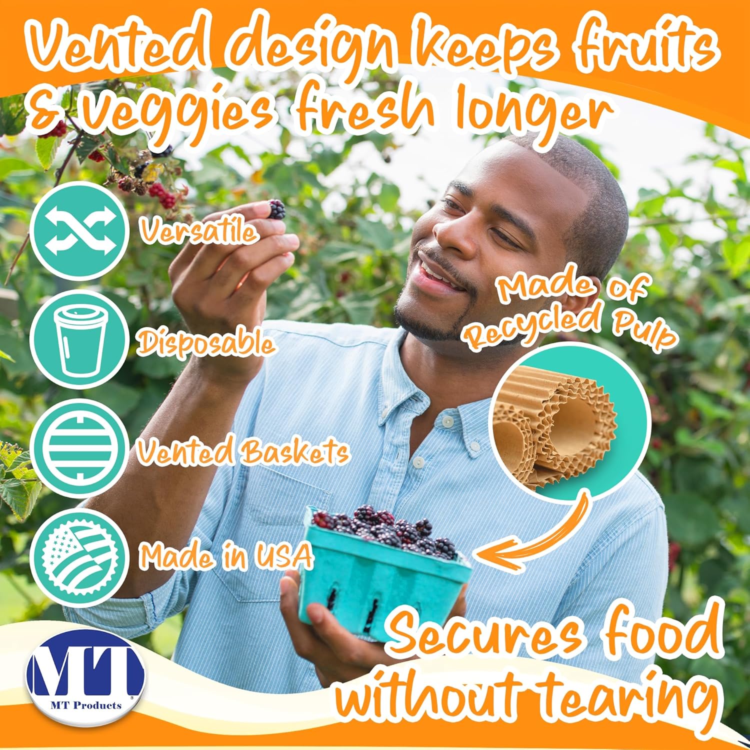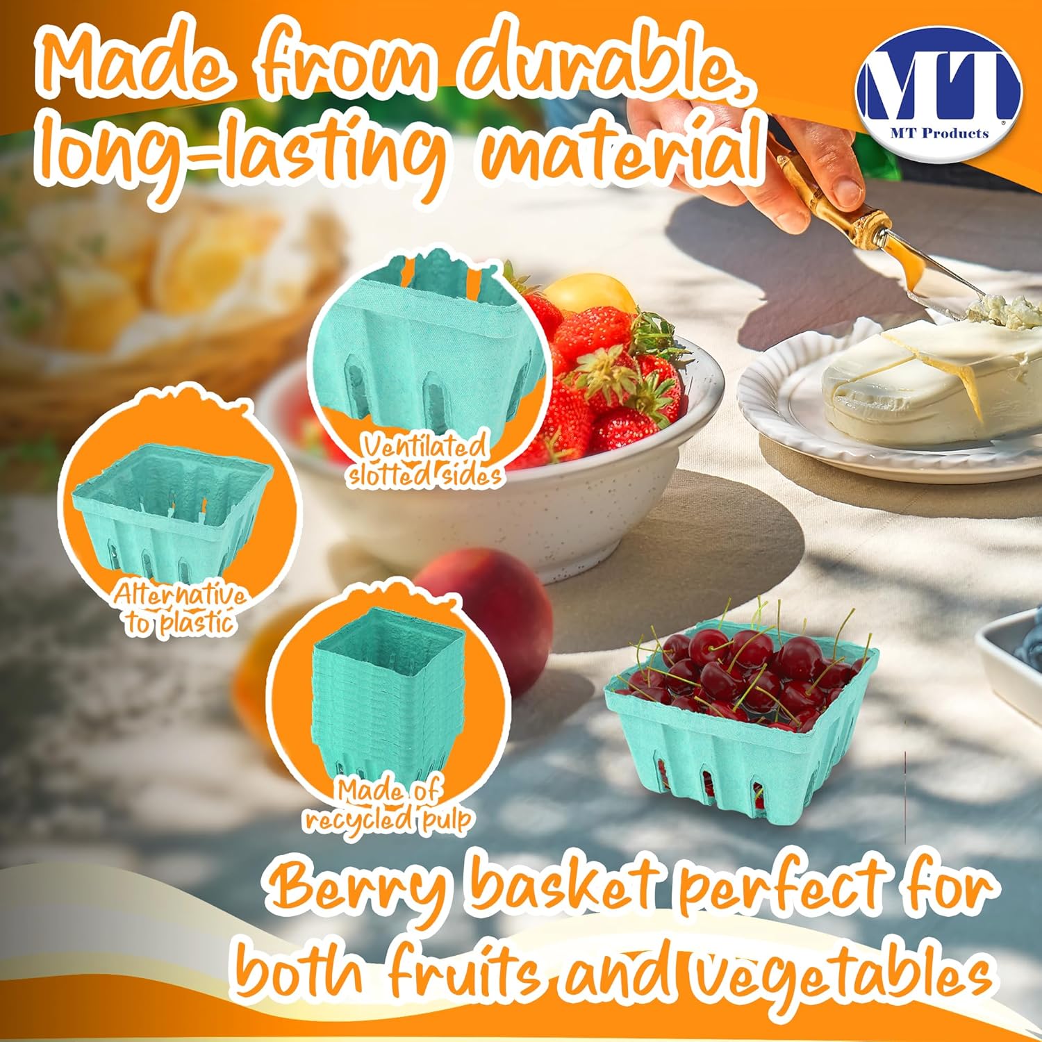 MT Products Green Berry Baskets 1 Pint – Molded Pulp Fiber Vented Produce Basket for Packaging Fruits and Veggies (Pack of 15) – Made in the USA