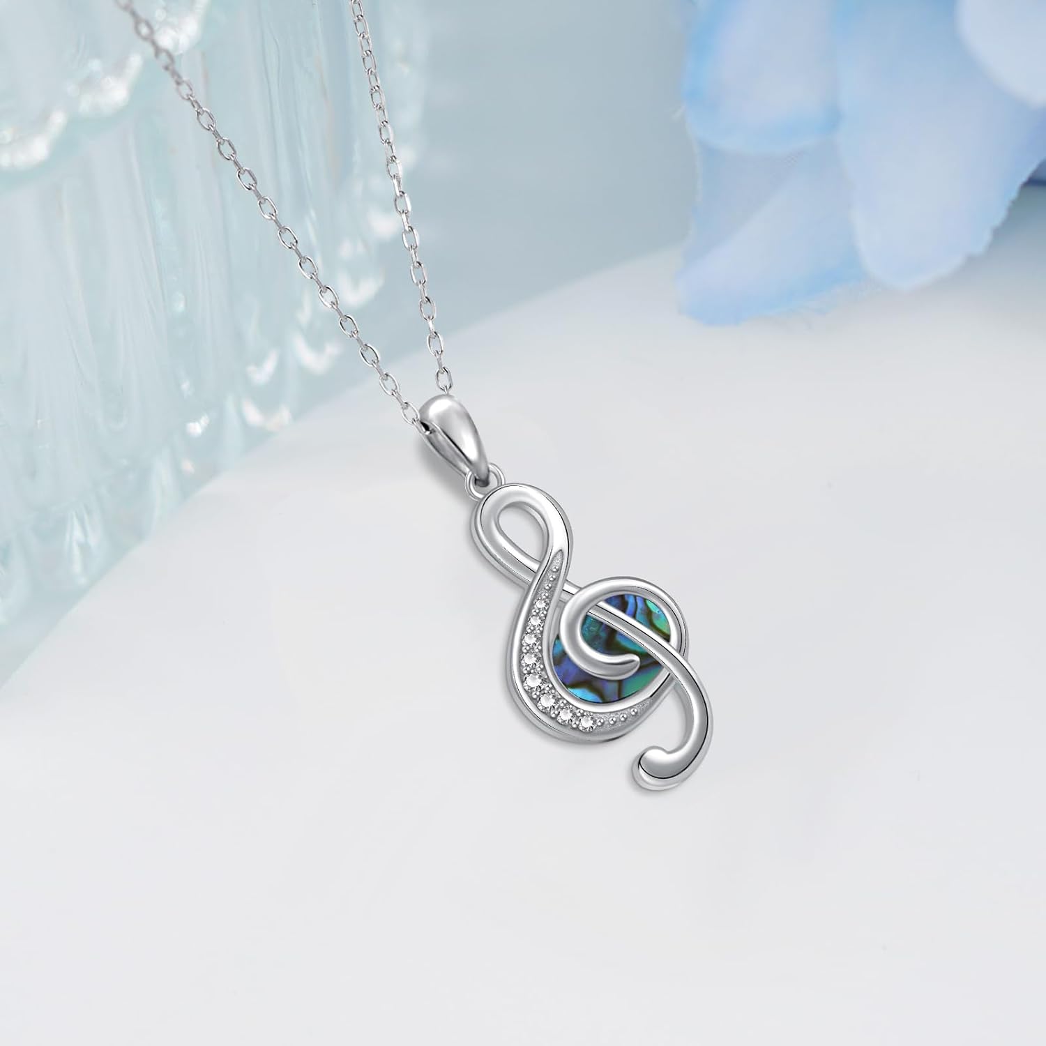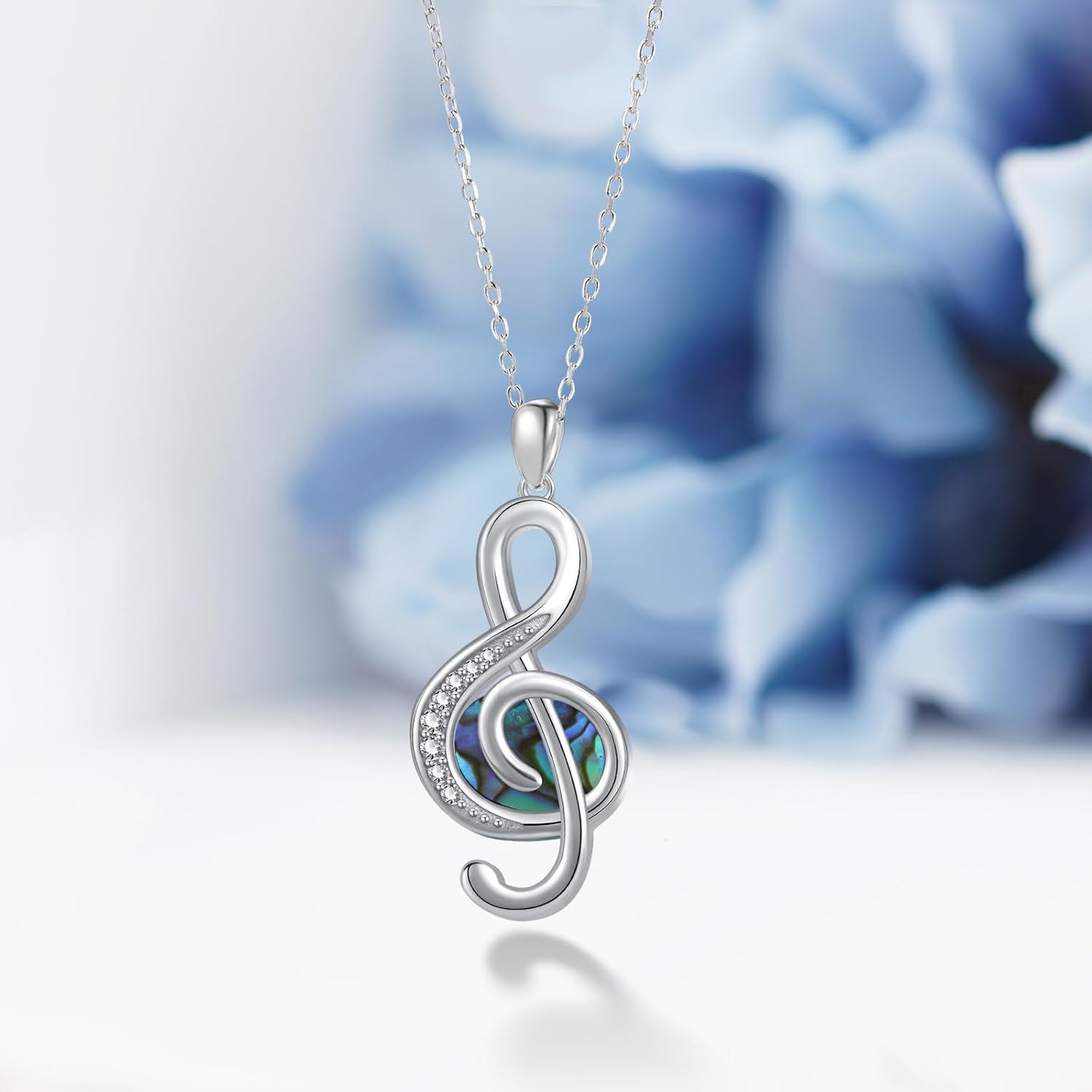 Music Note Necklace 925 Sterling Silver Abalone Shell Music Note Pendant Music Necklace Music Jewelry Gifts for Women