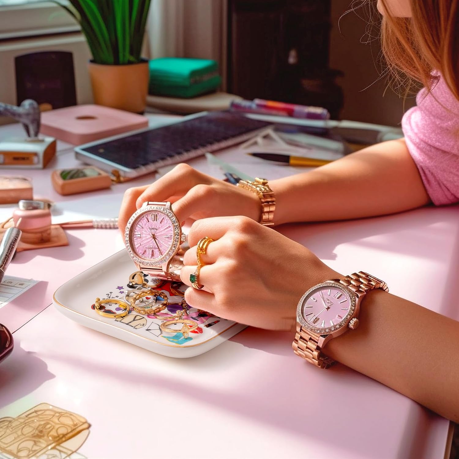 This tray can be used to store rings, earrings, bracelets, hair bands, watches, keys or other trinkets to avoid losing them.