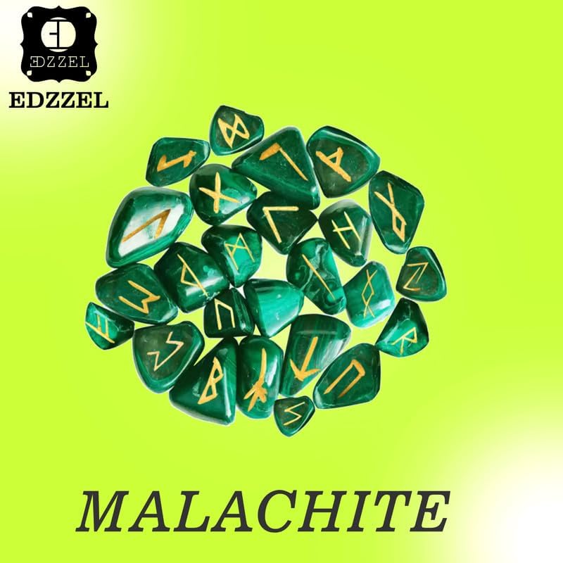 * EDZZEL Natural Malachite Rune Stones Set with Engraved