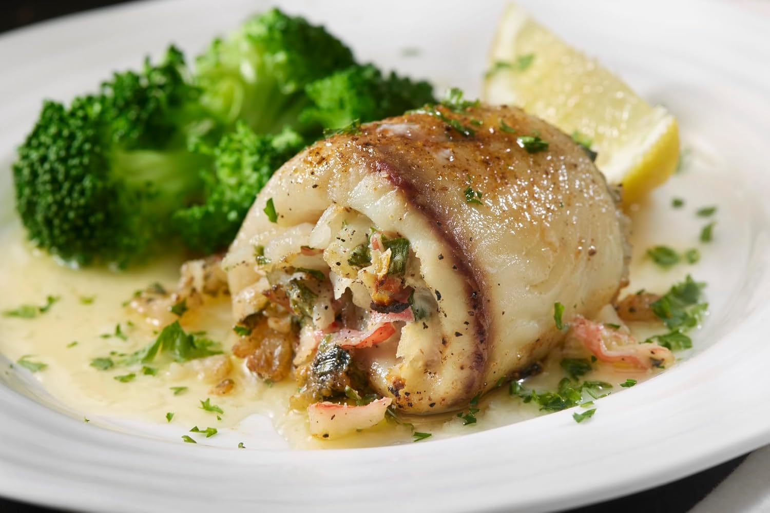 PREMIUM SEAFOOD BLEND: Enjoy the exquisite taste of premium white sole fillets, generously stuffed with a delicious blend of bay scallops, Atlantic rock crabmeat, and bread crumbs for an indulgent seafood experience.