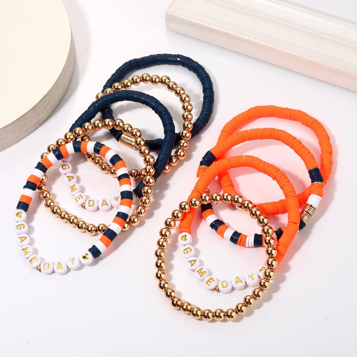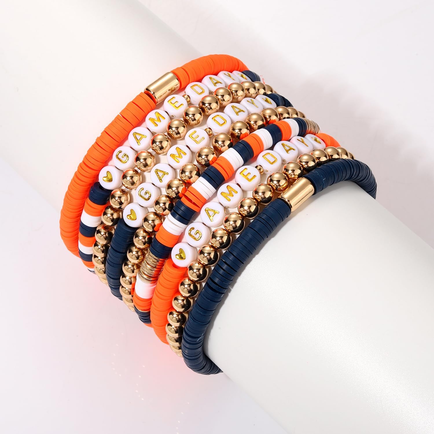 NLCAC 9 Pack Game Day Bracelets Stackable Heishi Beaded Stretchy Bracelet Preppy Jewelry Baseball Football Team Bracelets Sports Fan Accessories Gifts