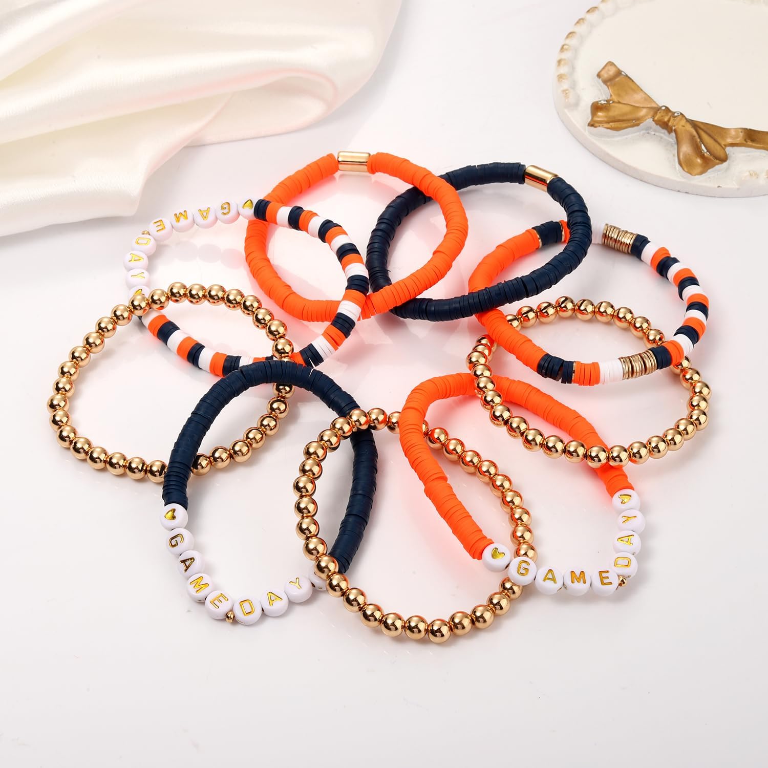 9 Pack Game Day Bracelets Stackable Heishi Beaded Stretchy Bracelet Preppy Jewelry Baseball Football Team Bracelets Sports Fan Accessories Gifts