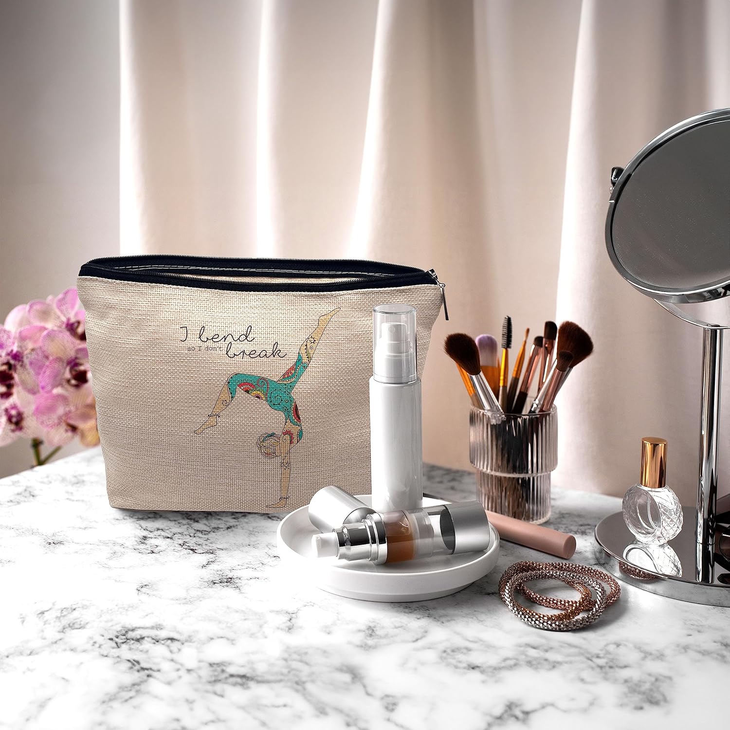 8 reviews for Nogrit Yoga Quotes Makeup Cosmetic Bag,I Bend so I Don’t Break Cartoon Tattoo Yoga Dance Girl Makeup Travel Toiletry Bag,Gifts for Yoga Lovers Enthusiasts Meditation Lovers Girls Women