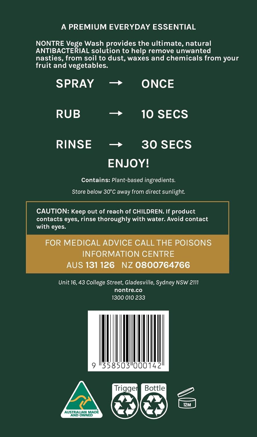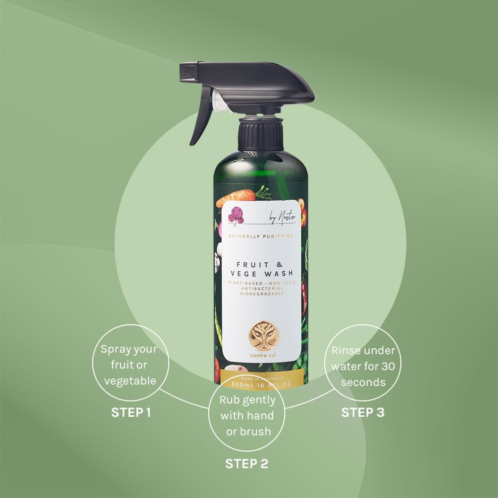 Nontre, Fruit and Vegetable Wash, Cleaning Solution to Remove Dirt & Wax, Fresh Produce Wash, 500mL (16.9 FL Oz)