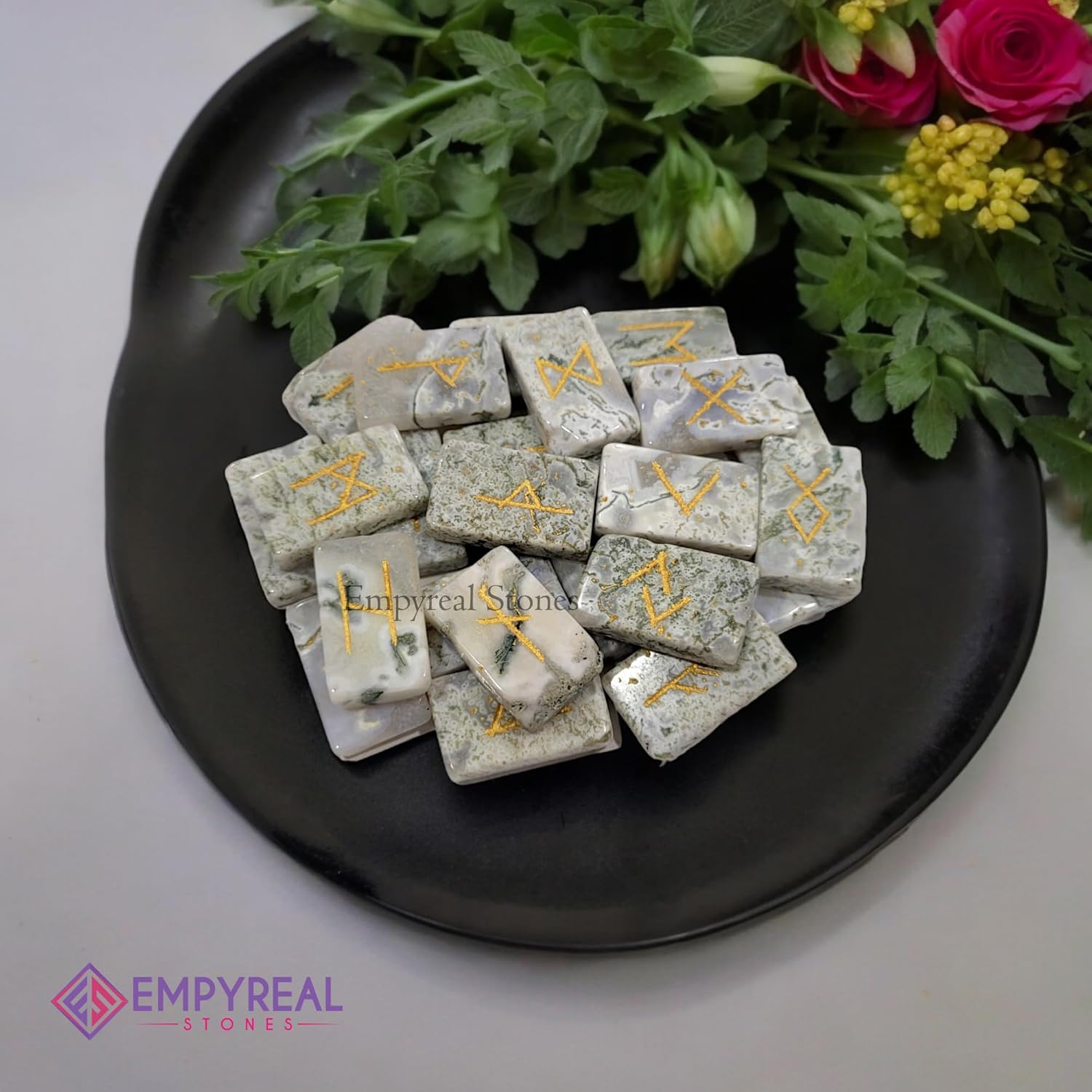 Norse Rune Stones Set, 25 Pieces with Guidebook, Elder Futhark Runes Engraved Divination Stones for Spiritual Growth and Insight (Tree Agate)