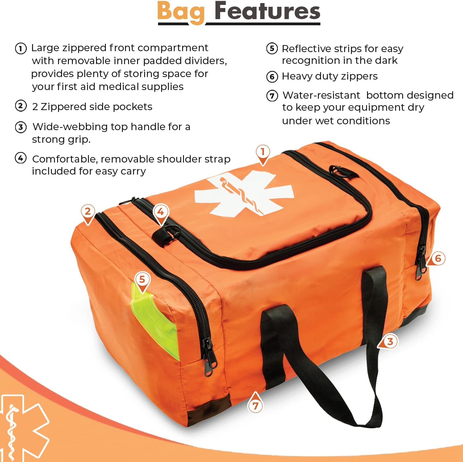 FUNCTIONAL DESIGN – The bag features a reflective medical symbol along with side reflective strips for easy recognition in the dark. A water-resistant bottom keeps your equipment dry under wet conditions.