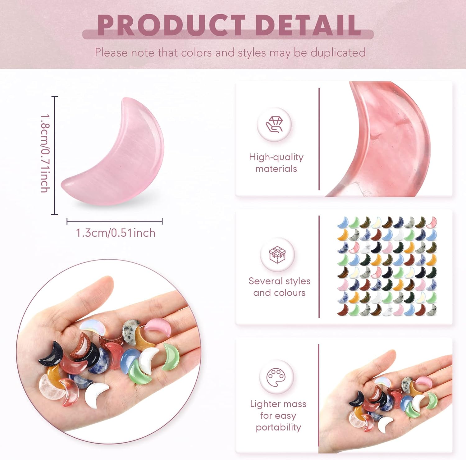 Proper Size: crystal moon measure about 13 x 18 x 8 mm/ 0.5 x 0.7 x 0.3 inch for each (due to the nature of natural materials, there may be differences in size and color) compact and portable, easy to carry and store, not bringing a burden, suitable for various handicrafts and matching other accessories; You can easily mix, match and put them in your pockets, wallets or bags