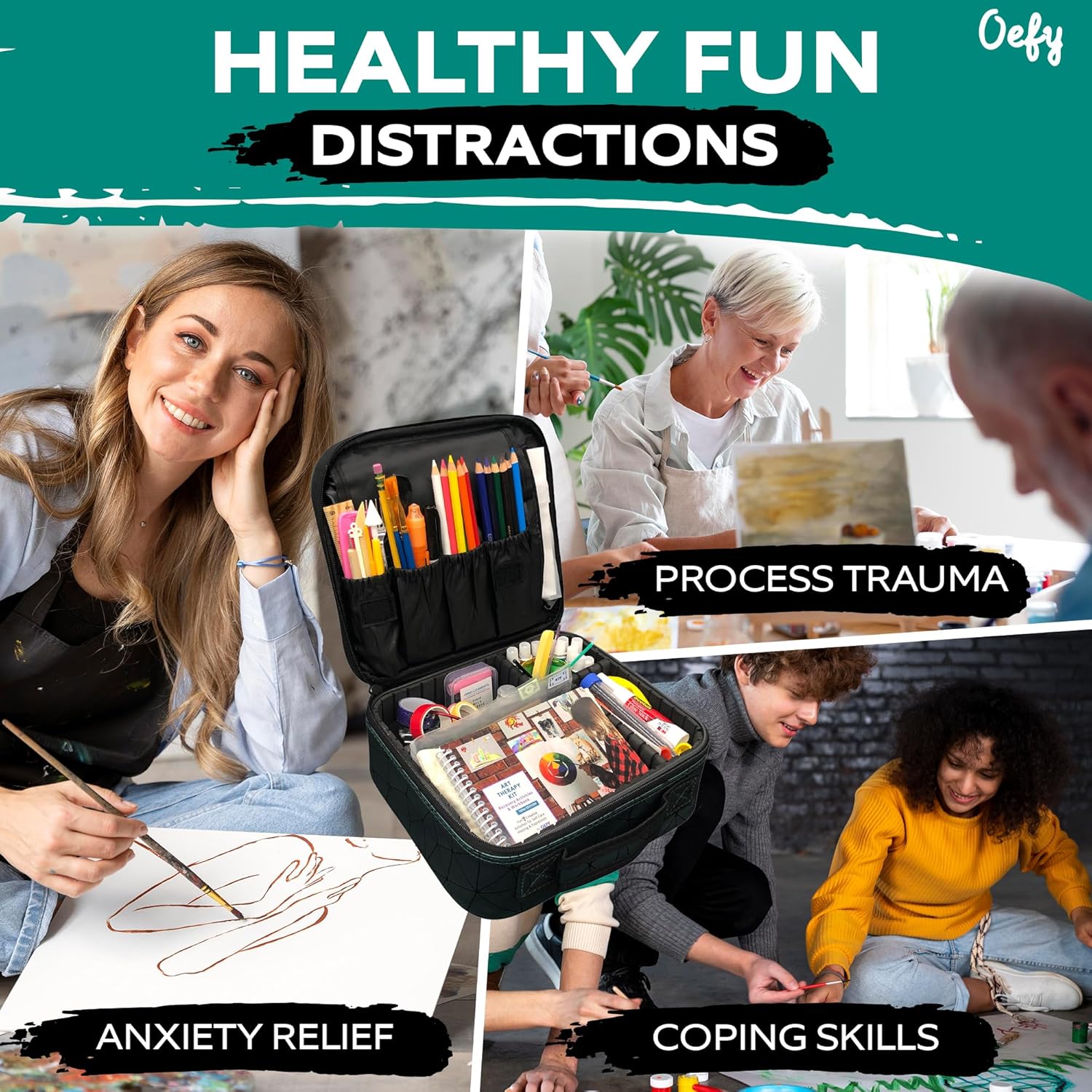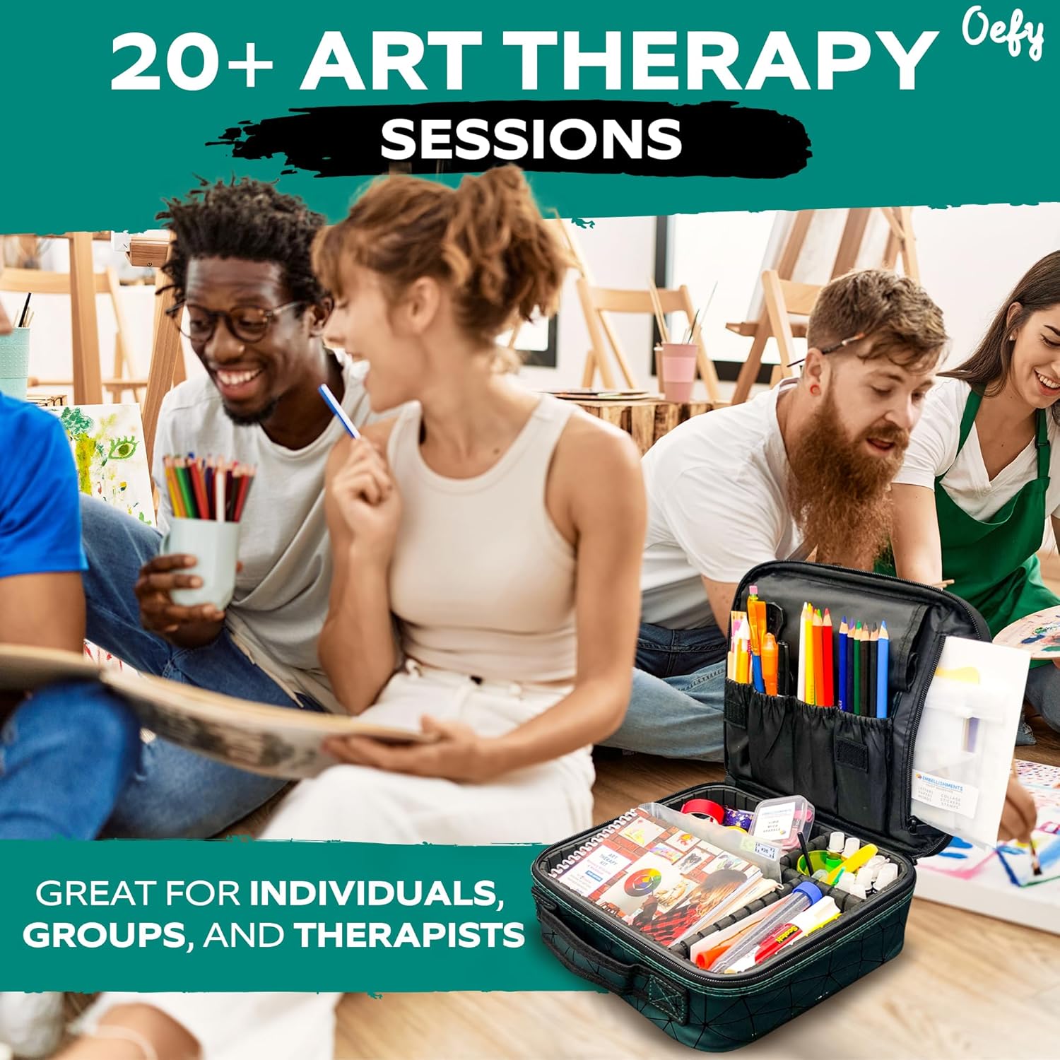 8 reviews for OEFY Art Therapy Activities Supplies Kit – 20+ Art Therapy Projects – Anxiety Relief & Relaxation, Coping Skills, Process Trauma, Emotional Health Wellness Kit – Chic Green Case