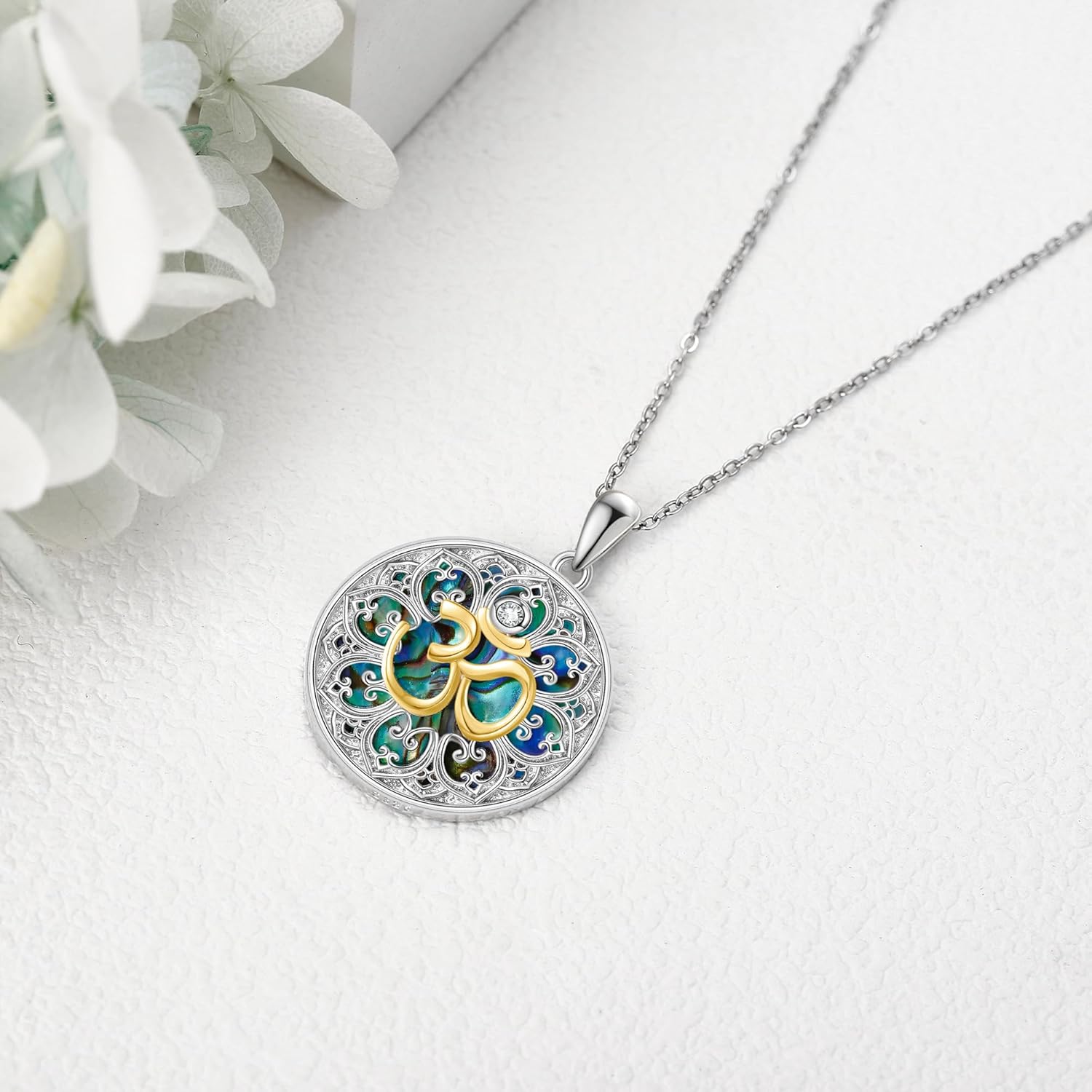 Om Necklace 925 Sterling Silver Buddha Lotus Abalone Shell Pendant Necklace Om Spiritual Hindu Amulet Protection Jewelry for Women