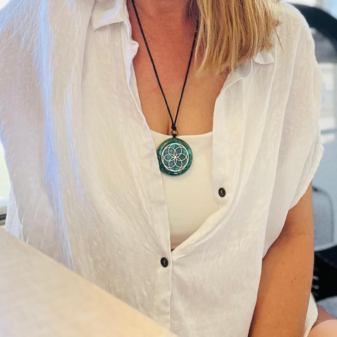 8 reviews for Orgone Necklace by Seed of Life – Healing Crystals Stones – Protection – SBB Coil-Orgonite Pendant Gems Turquoise, Moonstone, Rose Quartz, Meditation, Yoga, Reiki, Women Handmade, Arte Orgones Design