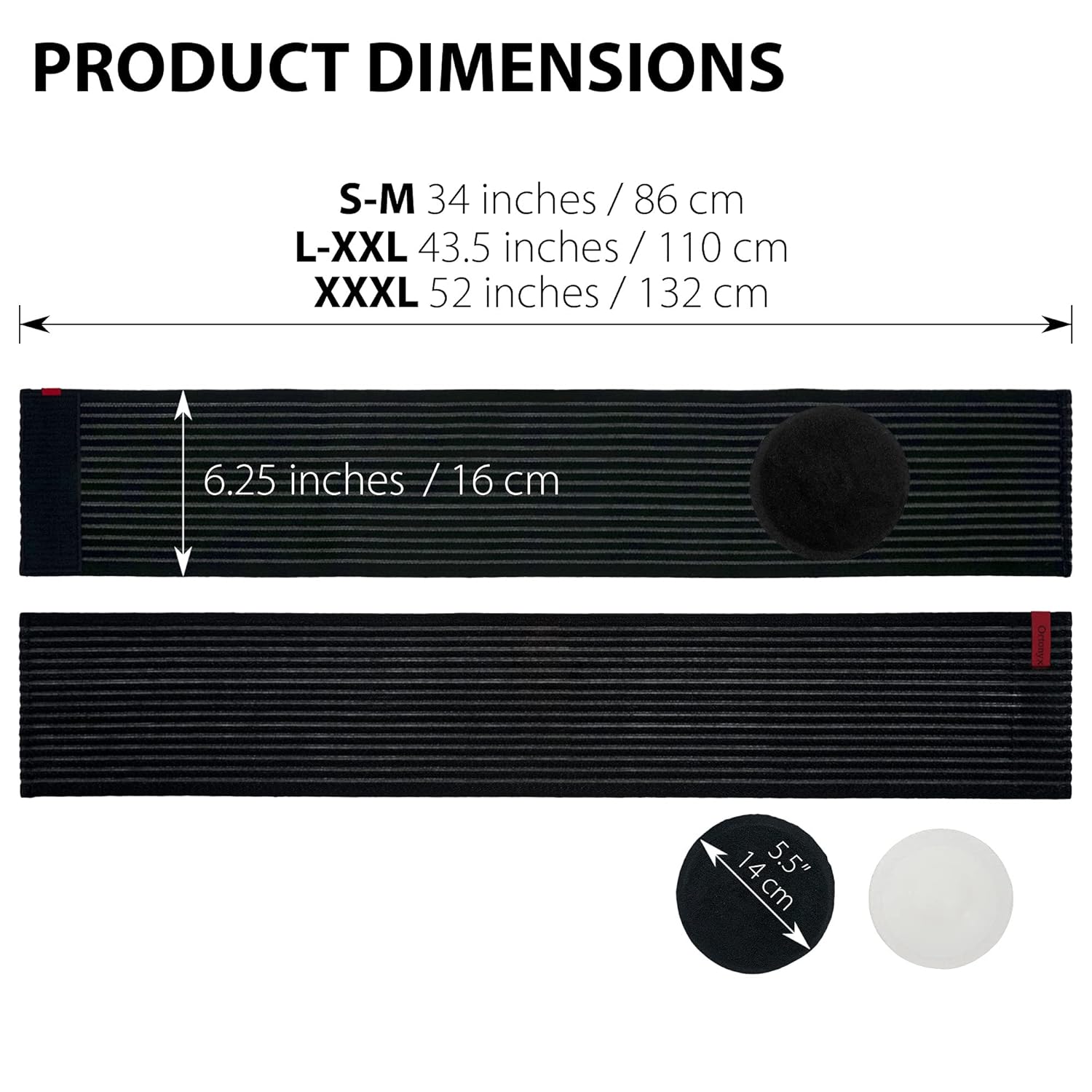 SLIM DESIGN: Low-profile fabric of abdominal binder is Hook & Loop compatible fabric all around the belt and allows secure and perfectly positioned fastening. This girdle for umbilical hernia will sit comfortably underneath everyday clothes. Thanks to its elastic material, the umbilical hernia brace remains very discreet even under tight clothing.