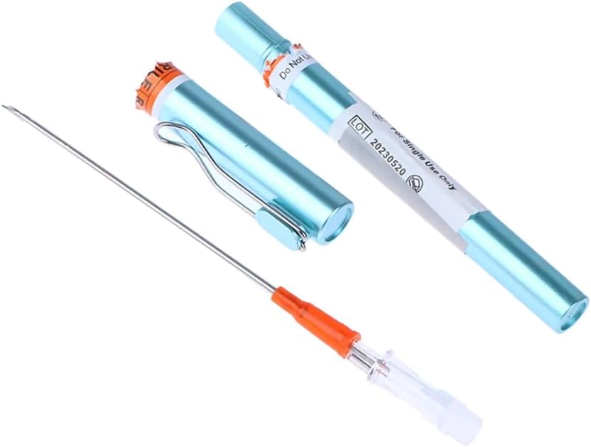 100% brand new hight quality Material:304S Stainless steel +PVC. The standard 14 Gauge size has a total length of approximately 6.1 inches and 15.5cm; Needle length 5.79 inches 14.7cm Emergency chest decompression needle is a reliable solution with a shock-absorbing casing to ensure the safety of the needle/catheter during deployment for continuous pressure reduction. The needle is housed in a sturdy shell with a textured, easy to open hexagonal cap. The chest decompression needle kit is compact and convenient, making it easy to carry in outdoor backpacks. Recommended Uses for Product: Backpacking, Trekking, Wilderness, Emergency Preparedness, Trail Running, Mountaineering, Outdoors, Hiking, Traveling, Camping