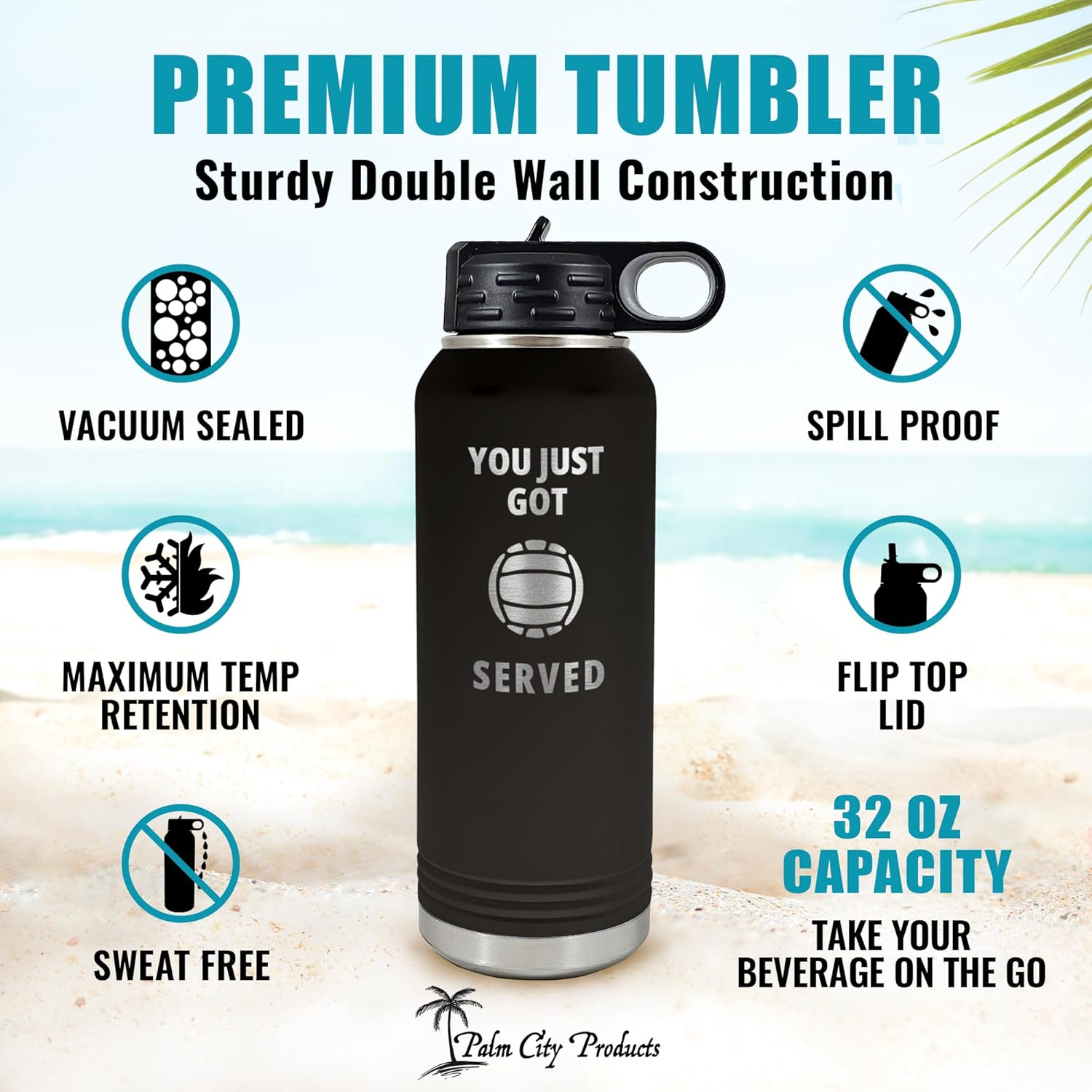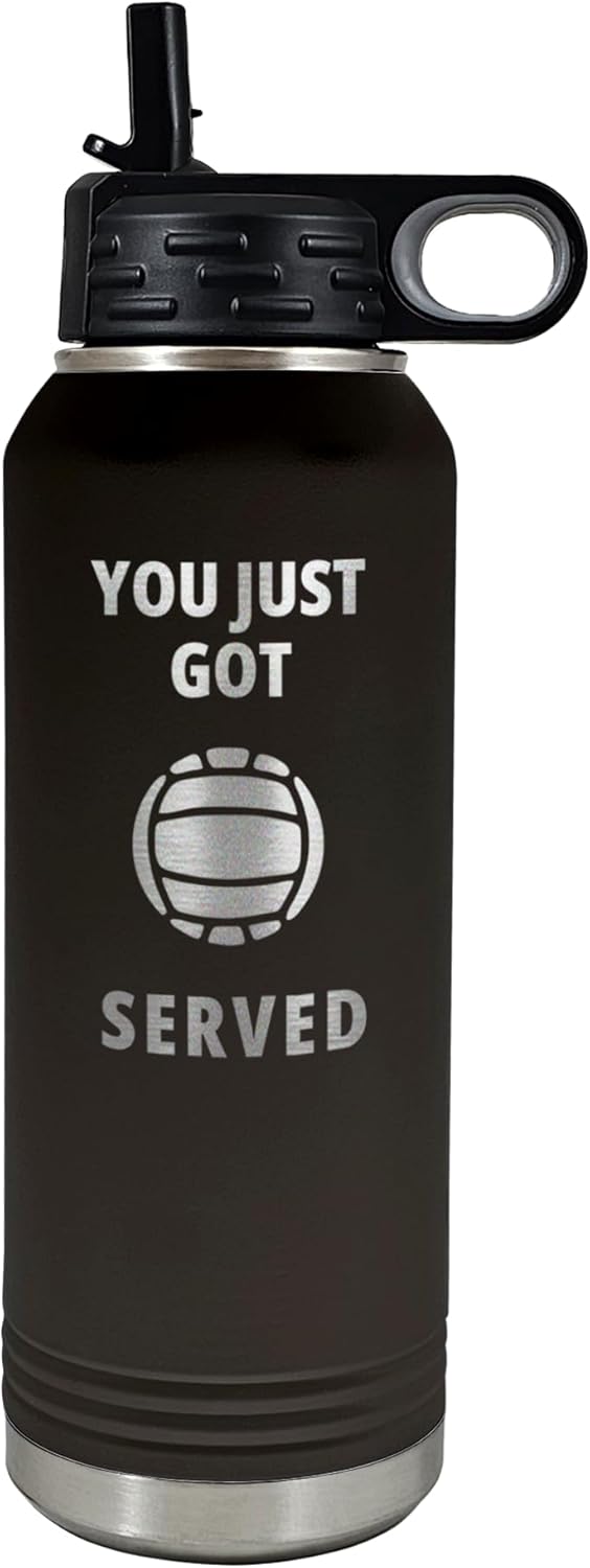 Palm City Products Volleyball Water Bottle – You Just Got Served Engraved 32 oz Insulated Tumbler – Funny Volleyball Gift Ideas, Team Accessories, Durable Flip-Top Bottle for Player Hydration
