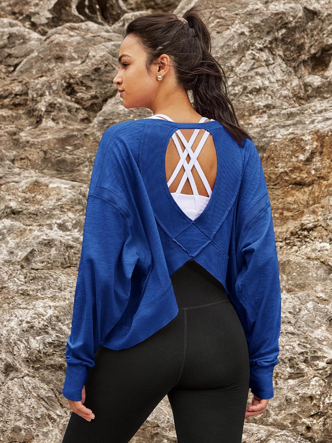 Panadila Womens Open Back Workout Top Long Sleeve Athletic Shirts Casual Crop Running Tee Y2k Yoga