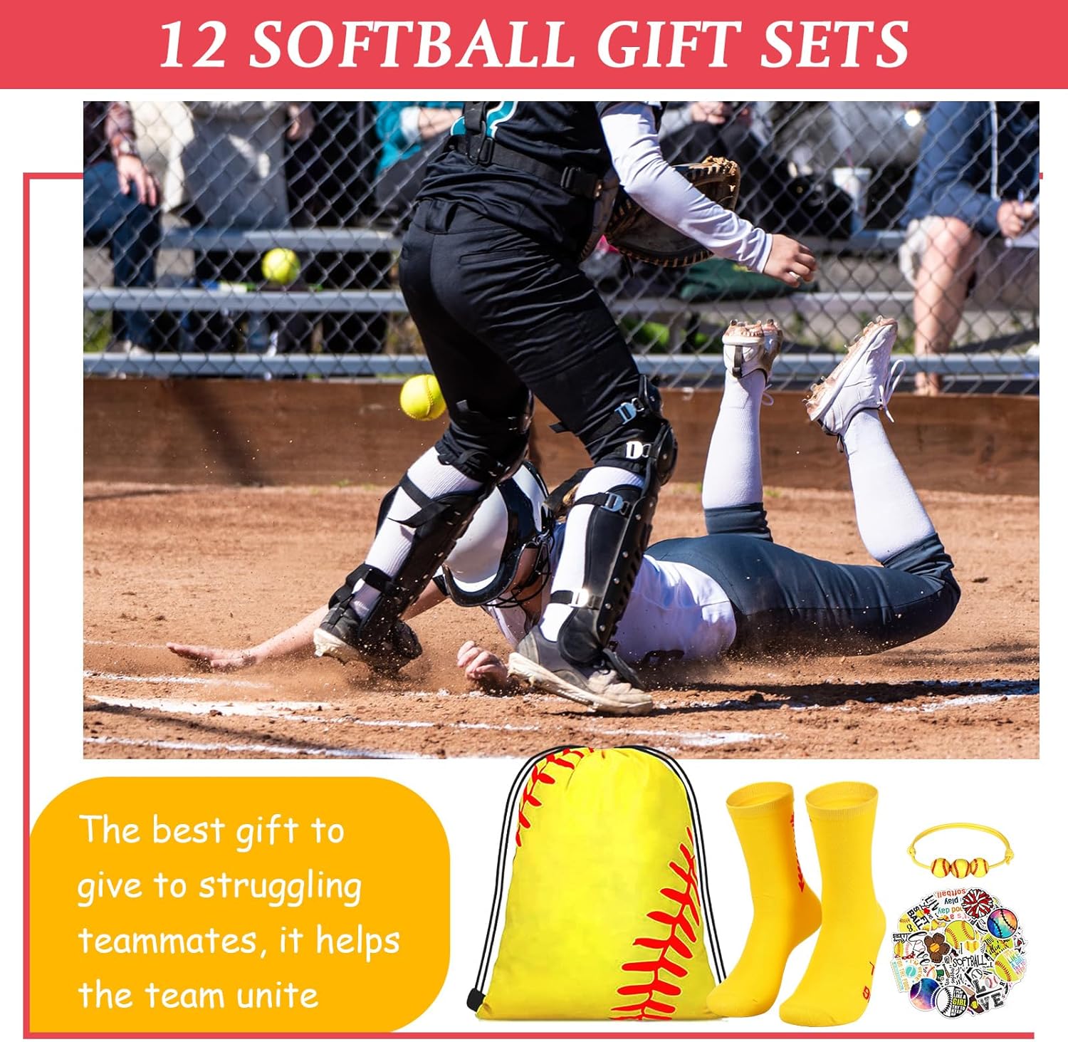 1 review for Panitay 12 Sets Softball Party Favor Gift Sport Socks Softball Drawstring Bags Softball Stickers Bracelets for Boys Girls