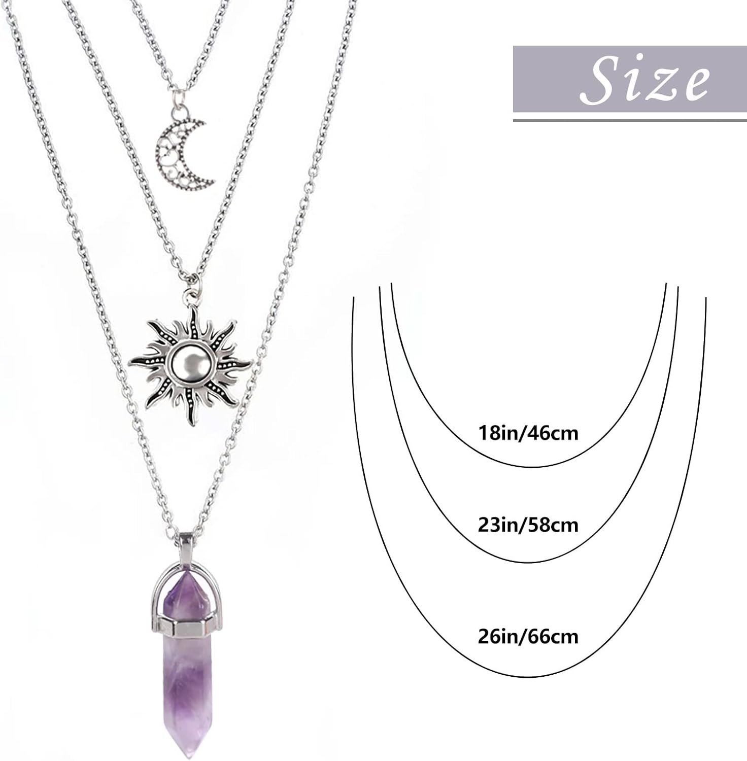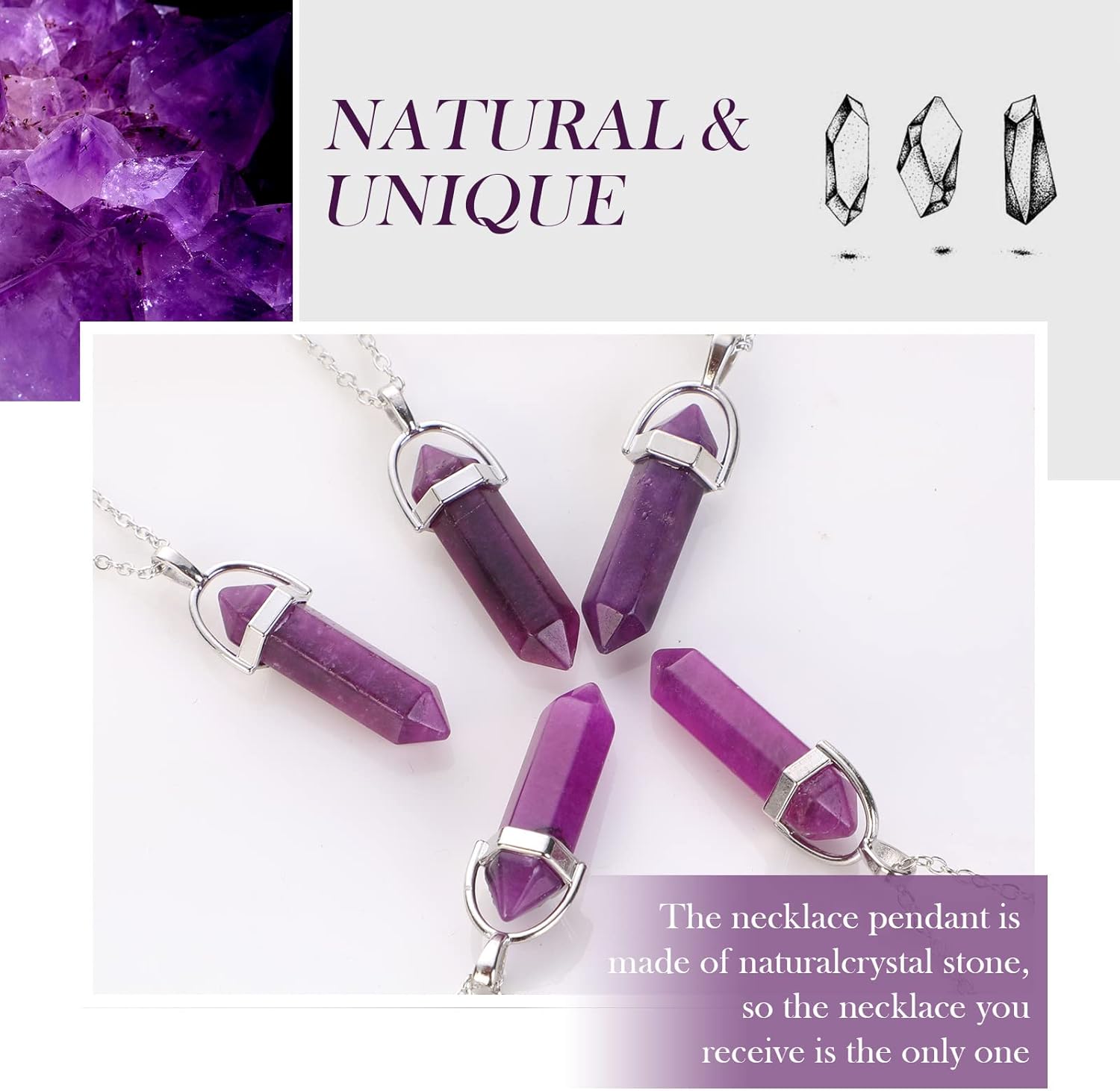 papasgix Amethyst Crystal Necklaces Spiritual, Quartz Healing Crystal Necklace Pendant Jewelry, Layered Healing Crystals Stone Necklaces for Women