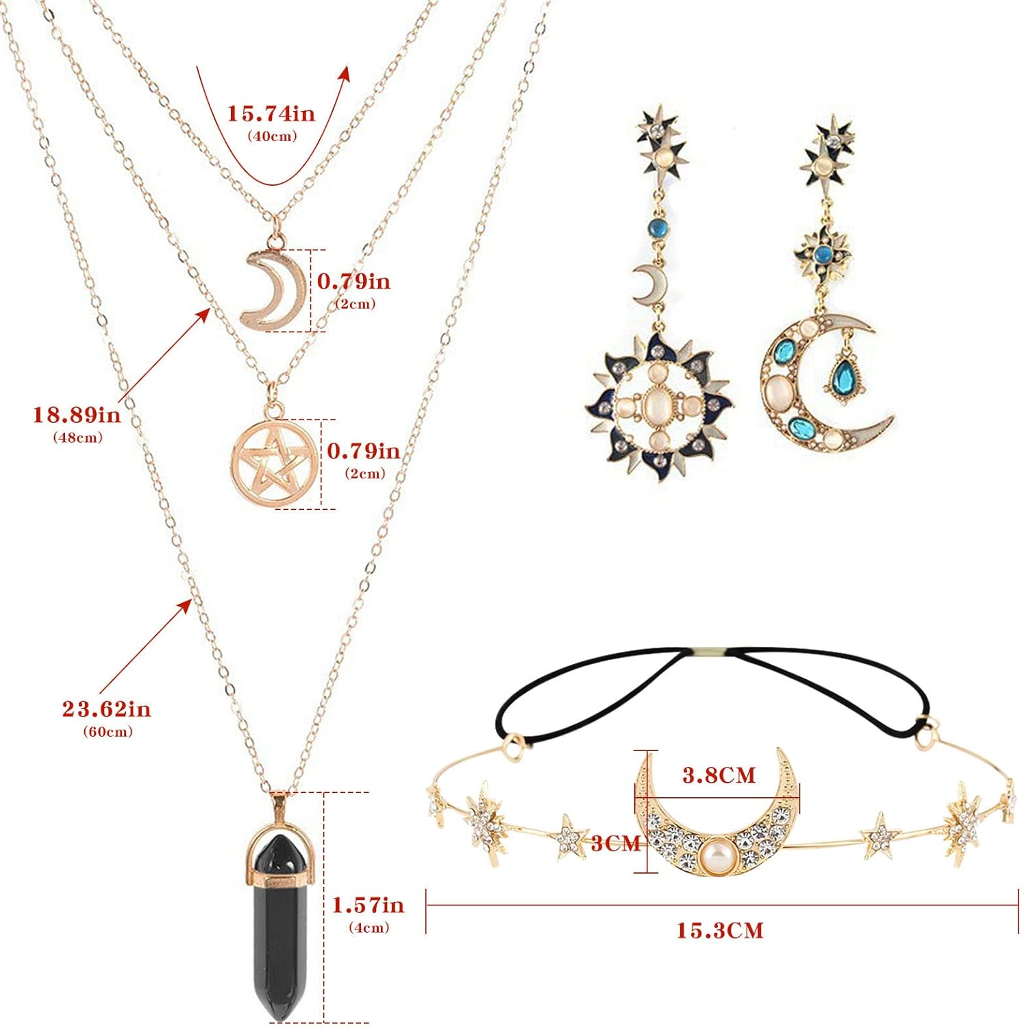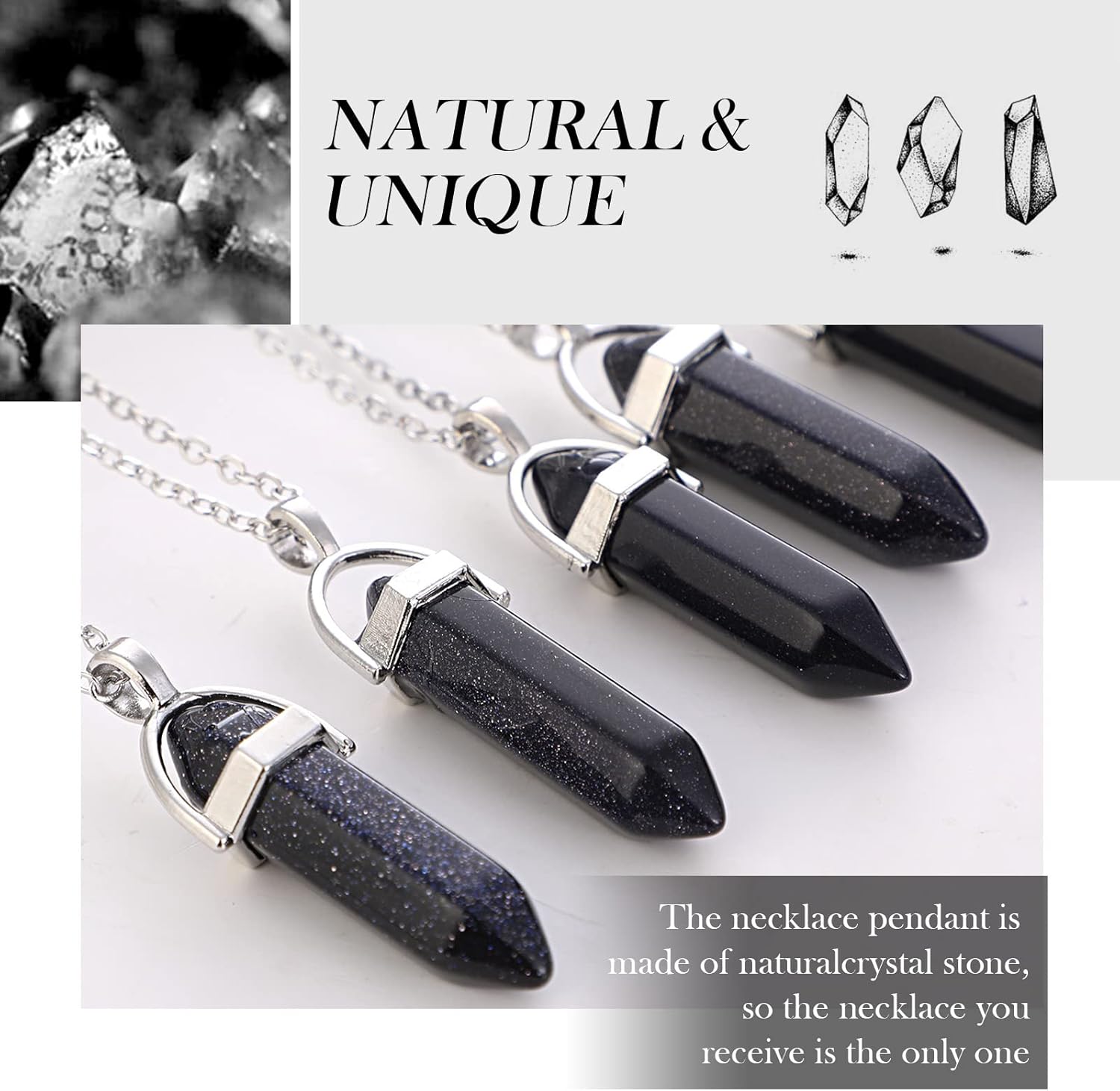 Bring you positive energy:These exquisite prism pendant necklaces made from different colored healing stones not only work with most of your clothing, but also help promote health, good luck and healing, bring peace of mind and balance to your energy system.Elegant necklace for daily wear:These hexagonal crystal necklaces, attached with stainless steel chains and moon star pendants, are simple yet stylish, suitable for many occasions, like birthday, Valentine’s Day, Christmas and Mother’s Day, anniversary and more, making you more attractive and appealing.Specifications:Material: natural stone, stainless steelColor: as pictures shownSize: one size fits most Notes:Manual measurement, please allow slight errors in size.Please note that these crystal pendants are natural and distinctive, which may differ from the pictures shown slightly.