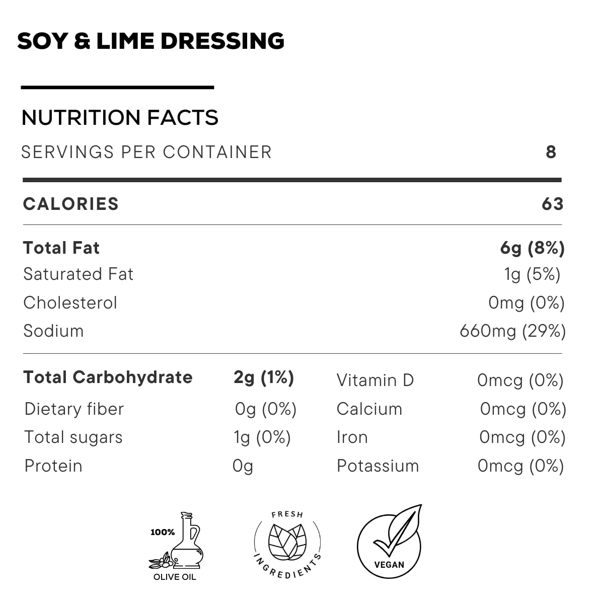 𝗦𝗢𝗬 & 𝗟𝗜𝗠𝗘 𝗗𝗥𝗘𝗦𝗦𝗜𝗡𝗚: Combines the fresh taste of citrus with Asian flavors using the juiciest Mexican limes and a blend of soy sauces enhanced with Mexican virgin avocado oil to create the perfect savory blend and provide you with a light and fresh dressing you can drizzle over any dish.