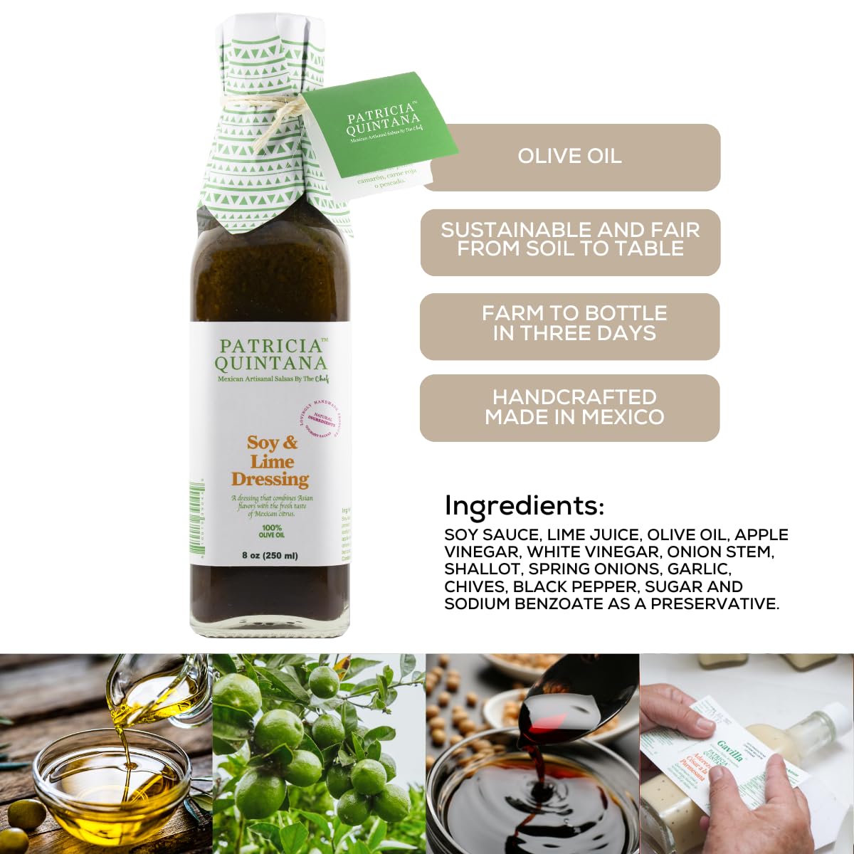 Patricia Quintana Soy & Lime Premium Dressing – Flavorful Artisanal Salad Dressing and Marinade, Made with Olive Oil. Perfect for salads, wraps, sandwiches, vegetables and more. (8 oz Bottle)