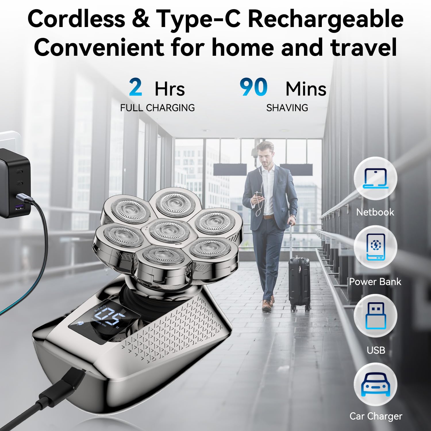 Rapid Charging:The head shavers for bald men is equipped with a powerful integrated lithium-ion battery that provides 90 minutes of wireless use after a quick 2-hour charge. The LED display screen indicates the shaver’s battery level and remaining usage time, eliminating worries of low battery during use. Whether you’re at home or on the go, you can shave anytime.