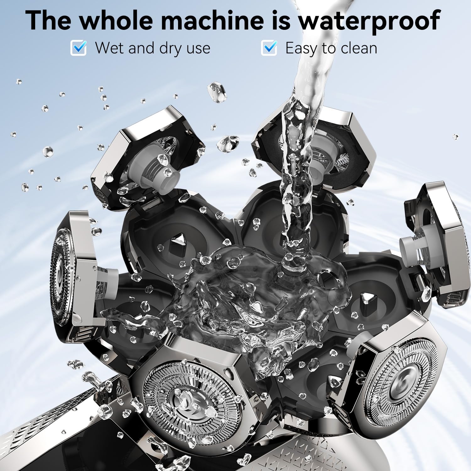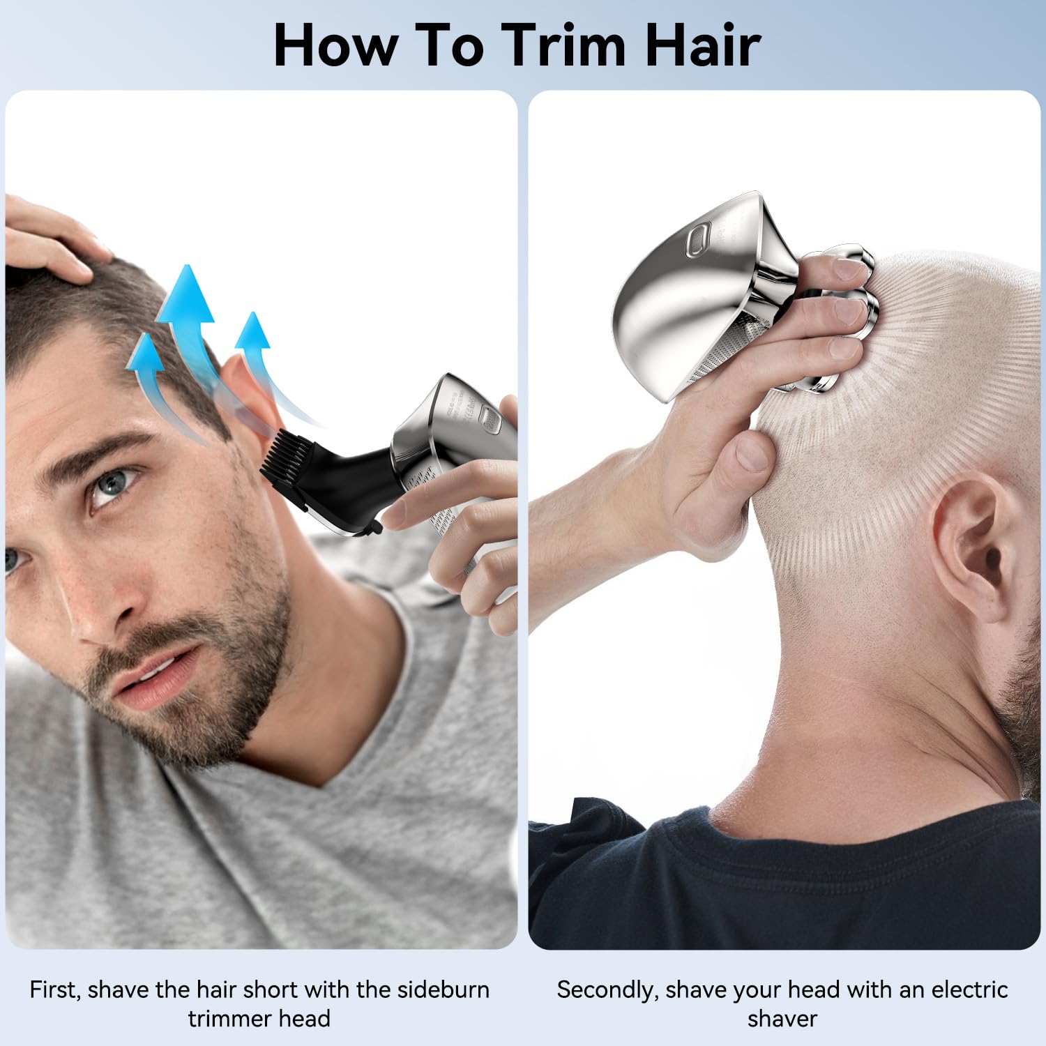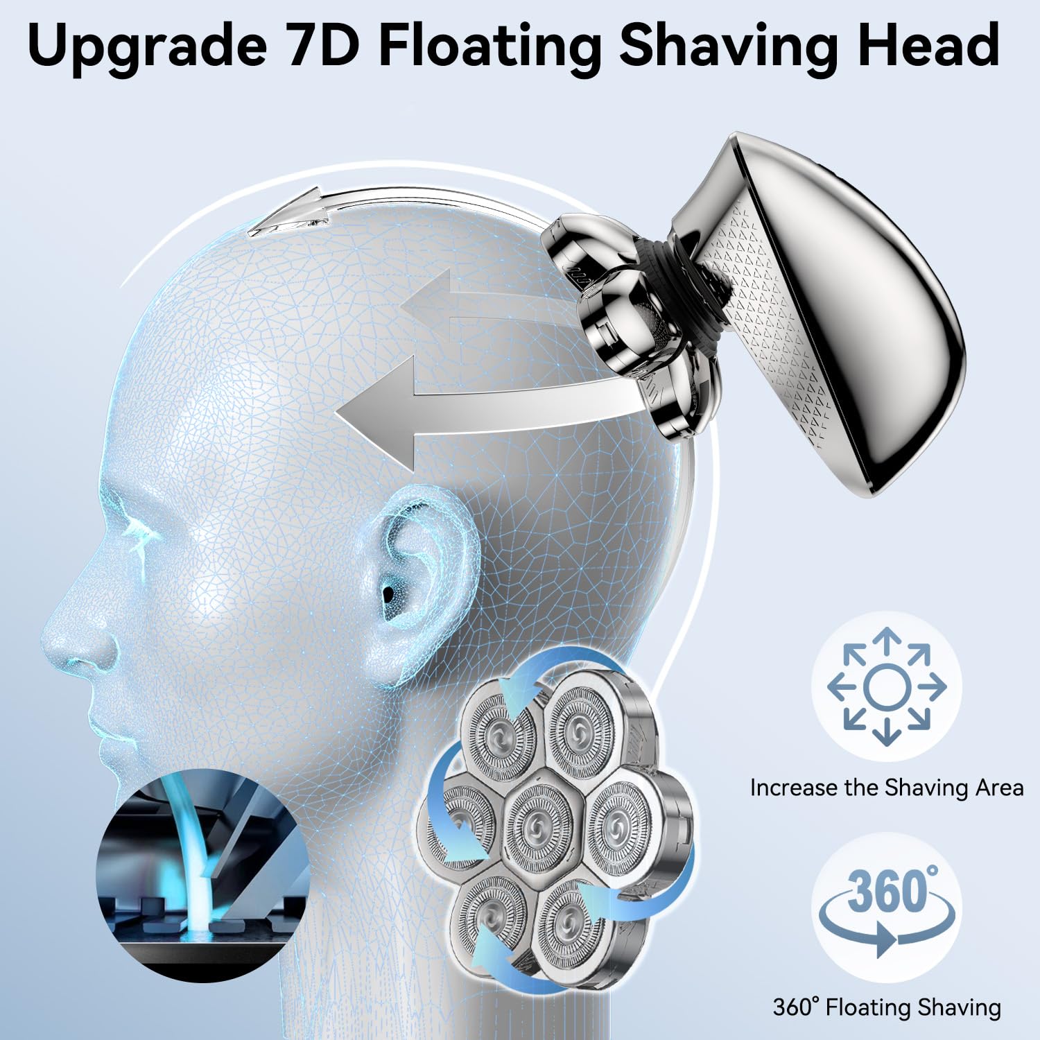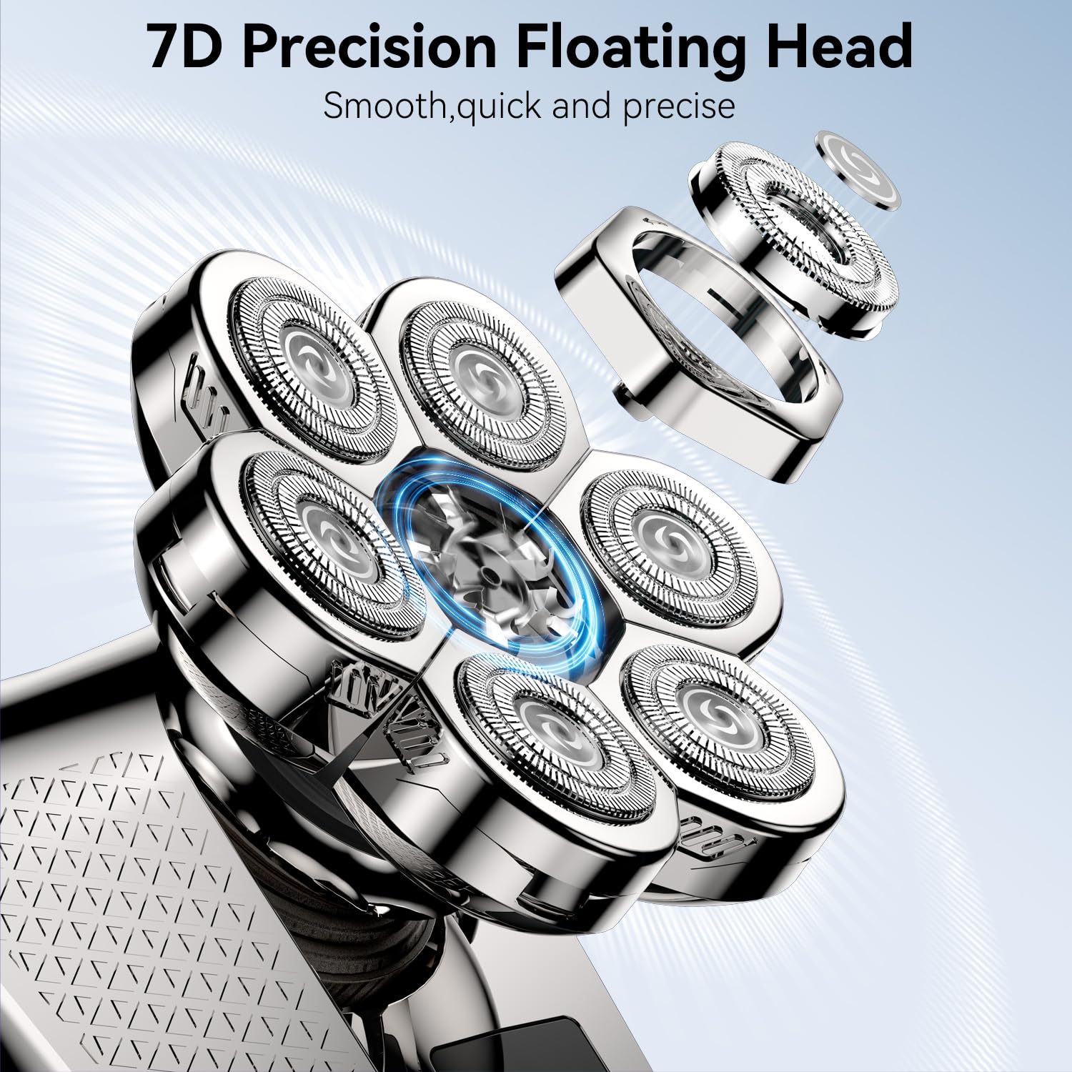 7D Floating Head Shaver: If your hair is long, you can use the provided hair clipper to cut it short, and then use the 7D blade to trim your bald head to avoid pulling the hair due to long hair. The flexible 7D precision rotating blades glide easily along the contours of your face, adapting to various curves and angles for an exceptionally close and comfortable shave.