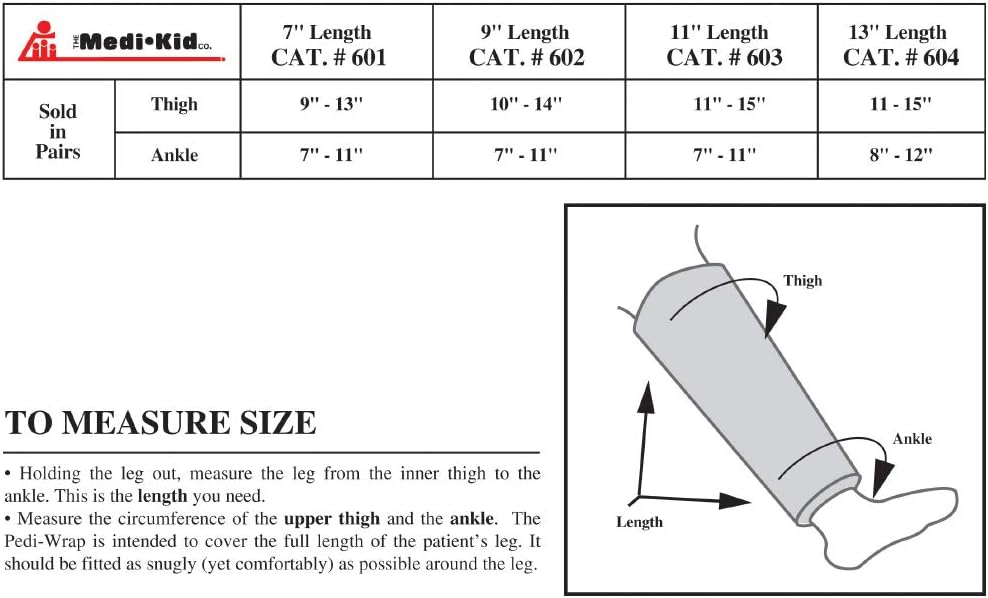 Measure the circumference of the upper thigh and the ankle. The Pedi-Wrap is intended to cover the full length of the patient’s leg. It should be fitted as snugly (yet comfortably)as possible around the leg.