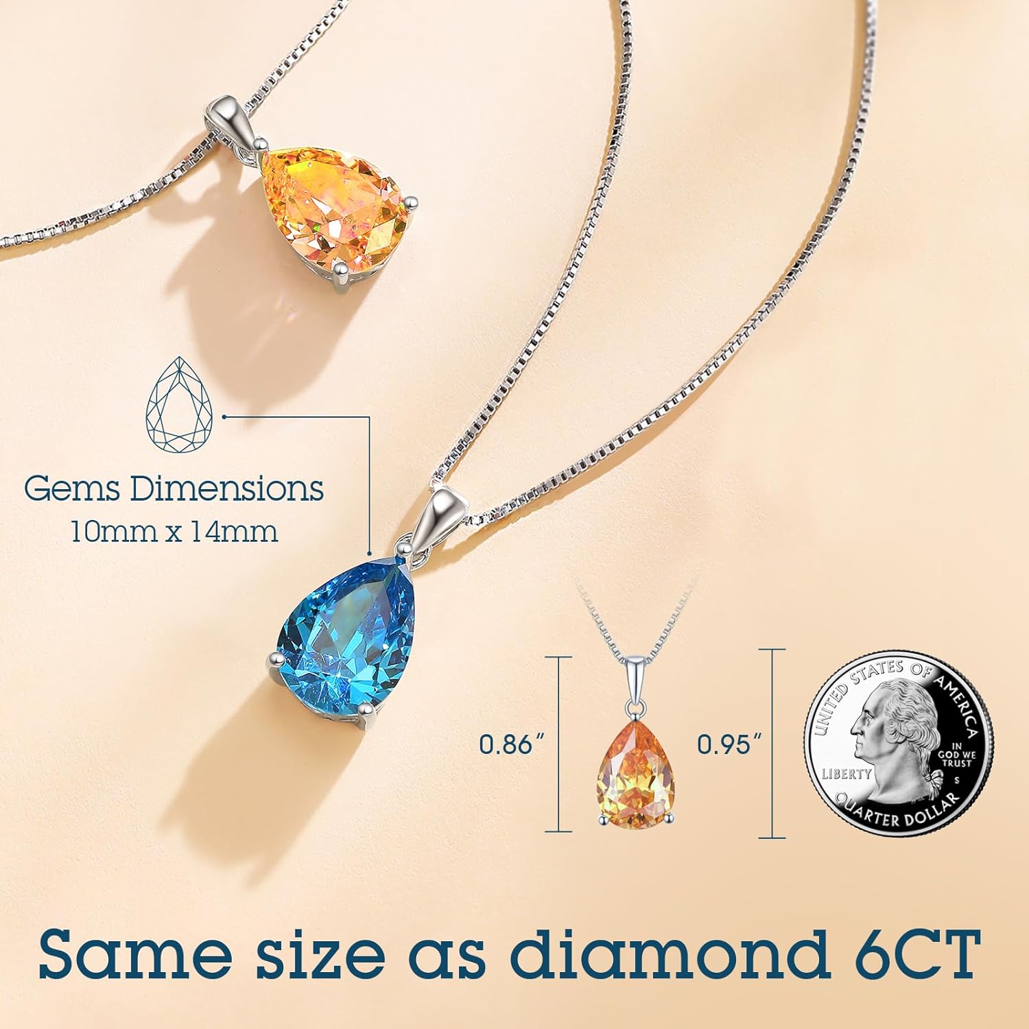 The first thing Iâd like to mention is the one issue i had with my necklace.. unfortunately the stone in my necklace is off a little.. i tried to provide a picture of this but I noticed almost immediately that the bottom of the teardrop comes off of the edge of the setting too much. It appears like the stone is wedged wrongly so, while the tip is properly flush with the setting, as it moves downward to the bottom, it raises up and pushed the stone over the setting, causing it to hang off unevenly. I make jewelry myself and I know that teardrop/pear shape stones can be finicky, especially with a three prong setting. The issue with my necklace is a common issue with this shape. Itâs due to improper placement and then tightening the prongs incorrectly. The tip of the pear needs to centered and lift up a tad so that when you tighten, it properly pushes the tip down into the setting instead of pushing it down and out of the setting.So, i feel that for such a spendy necklace, the craftsmanship and construction lacks and quality control could and should improve. I would have honestly given this 3 stars but decided on 4 stars only because this issue isnât noticeable when Iâm wearing it and when you look at it straight on. It is a little noticeable from the side when Iâm wearing it because of how it catches light at the bottom.Personally, if Iâm giving an expensive gift like this, Iâd be embarrassed if it had a flaw like this. It certainly comes in very presentable packaging but, the necklace is all that really matters and expecting perfection isnât unreasonable for the quality itâs advertised to be.Otherwise it is pretty. The blue color is gorgeous! I just wish there was more attention to detail and actual quality and craftsmanship. It feels like the necklace is a tad overpriced and the quality is nice enough but exaggerated. Itâs not an ugly necklace nor is it bad quality, but it didnât wow me like I thought it would..