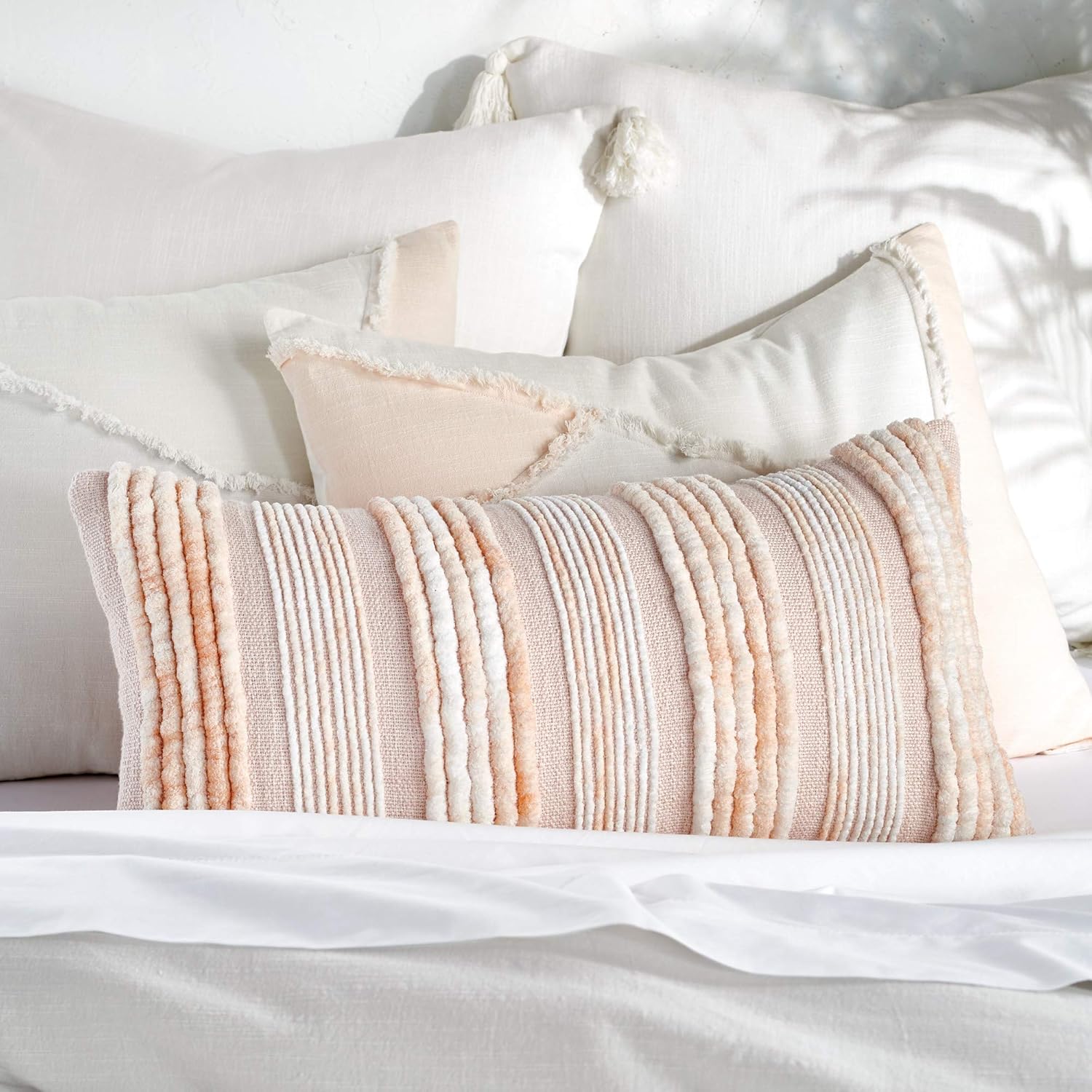 Colorblock design with fringe trimming adds stylish charm to bedroom decor