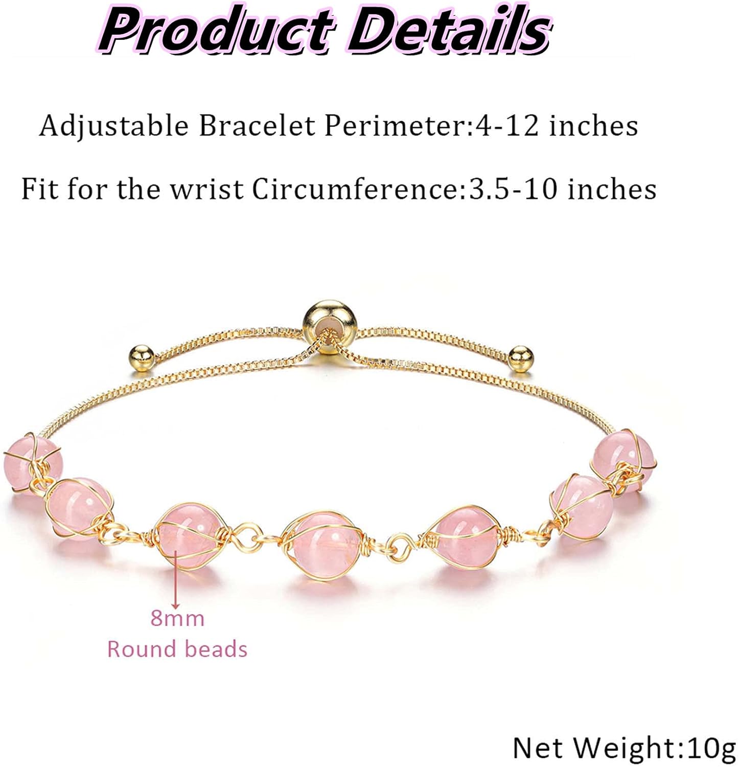 Chakra crystal bracelet is made of natural Rose Quartz Crystal Gemstone Round Beads(8mm) wire with high quality of 14K gold plated and adjustable knot, fashion crystal beads bracelet, wear it more fashion and fascinating!
