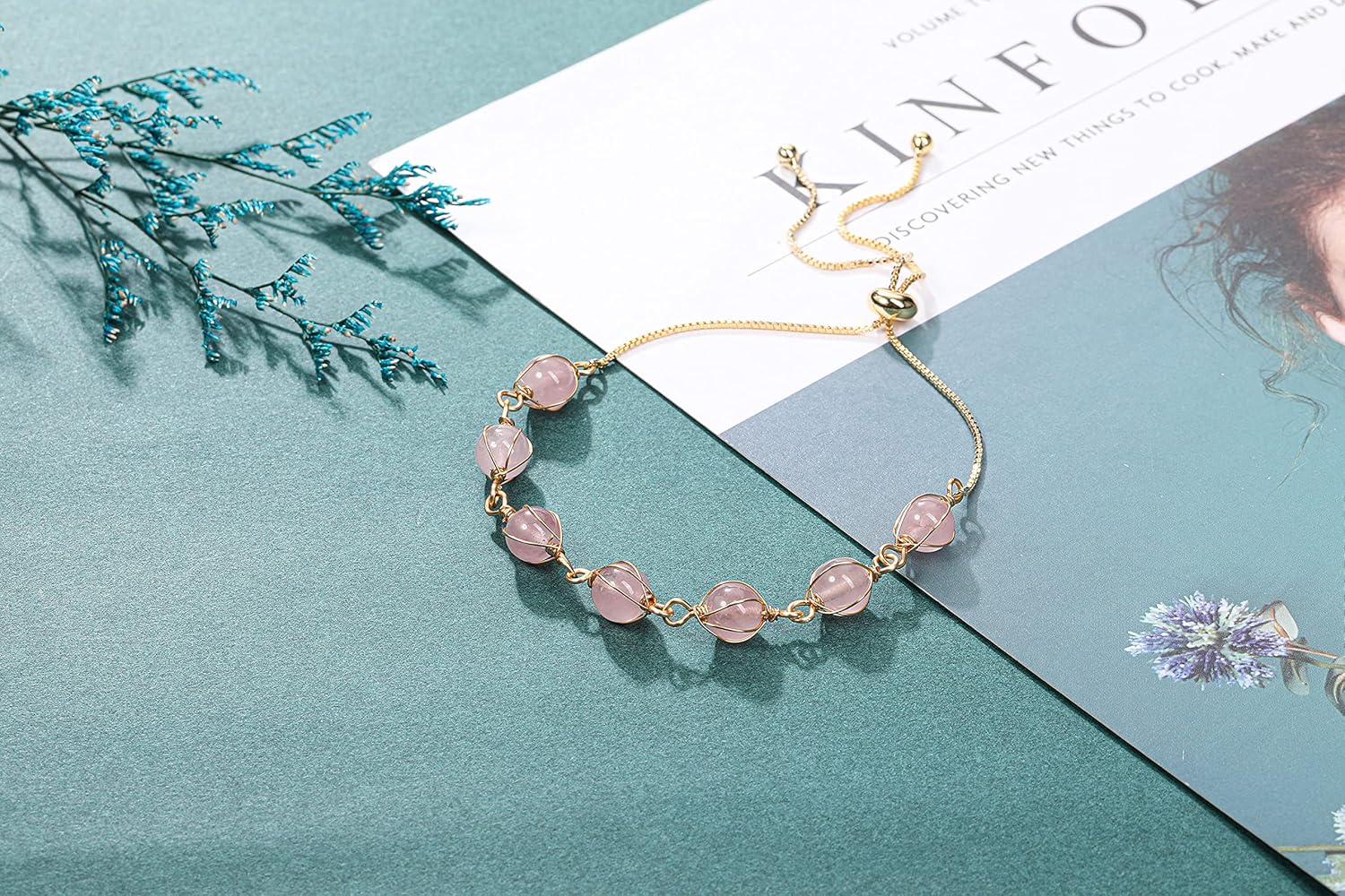 Healing crystal gemstones Bracelet and 14K Gold Wire Wrapped Natural Gemstones 8mm Beads bracelets