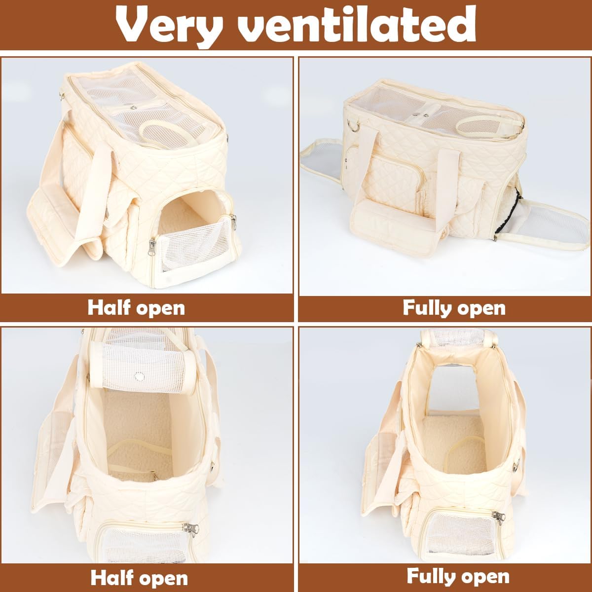 Innovative Ventilation and Privacy Design: Our dog purse carrier for small dogs features mesh windows on the sides and top for optimal airflow, preventing overheating and keeping your pet comfortable. Unlike other carriers that feature mesh windows on all sides, our design strategically balances ventilation with concealment. This is particularly beneficial for cats and dogs who prefer a quieter, less exposed environment