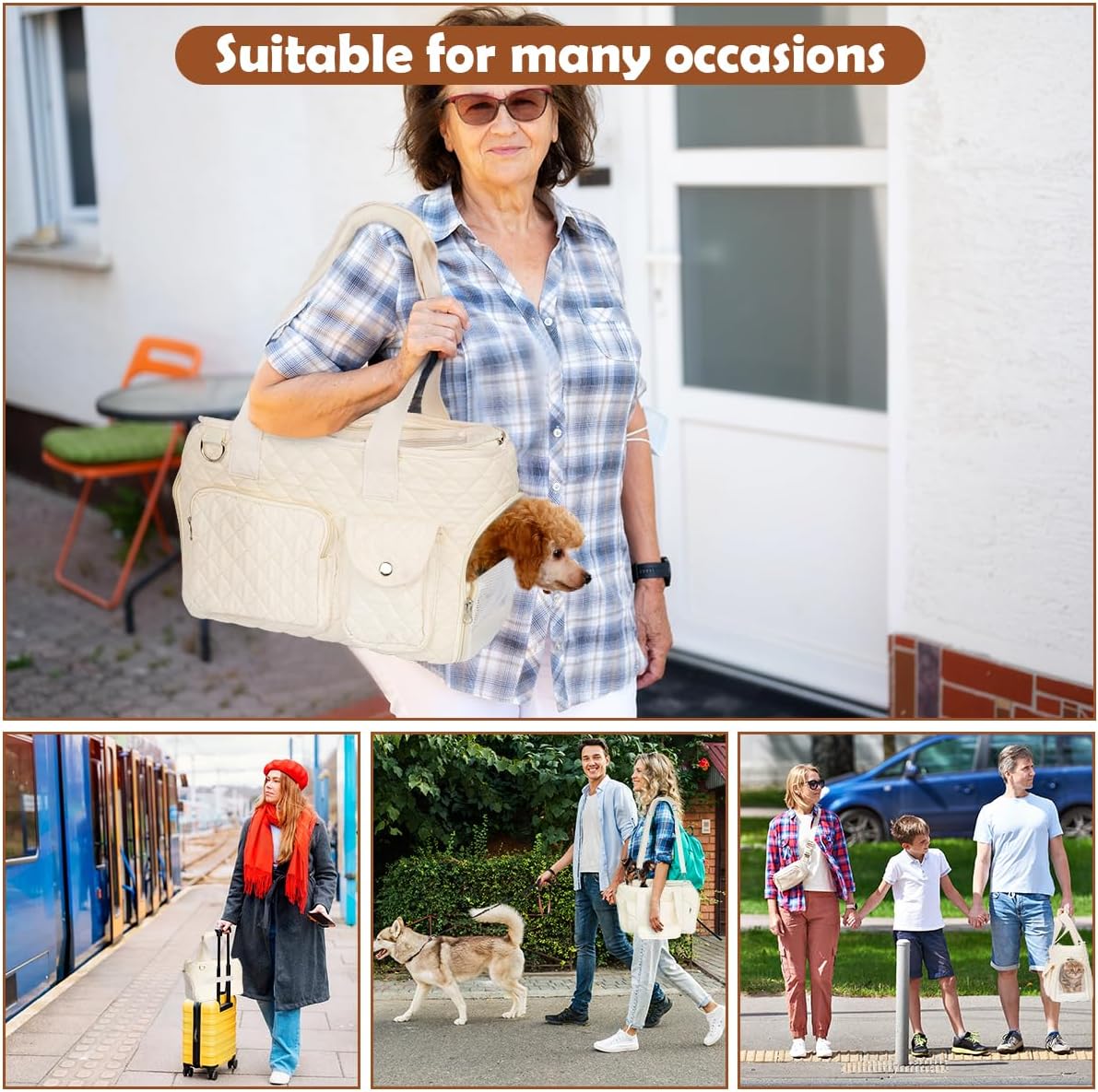 Effortless Portability and Stability: Equipped with both a carrying handle and a shoulder strap, this carrier can be lifted like a handbag or slung over your shoulder. The shoulder strap also stabilizes the carrier in a car seat. Two side pockets store vet records, medications, pee pads, food, snacks, and toys. A luggage tie-down strap secures the carrier to your suitcase.Side and top openings make it easy to place your pet inside and take them out,It also allows your pet to stick their head out