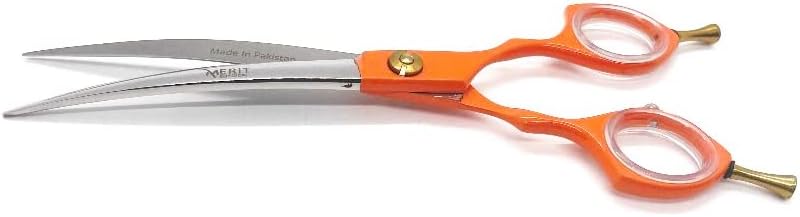 Pet grooming shears and scissors with curves are made to create curves and give curved areas on the dog a finished look. Heads, ribcages, back leg angulation, legs, and feet are areas that are amenable to trimming with curved dog grooming scissors. Great to cut hair around the eyes. Made of High Carbon