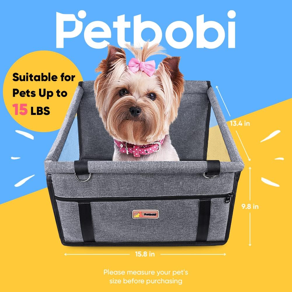 Petbobi Pet Reinforce Dog Car Seat for Dog Portable and Breathable Dog car Booster seat with Seat Belt Dog Carrier Safety car seat for Travel, with Clip on Leash with PVC Tube (Cationic Fabric Grey)