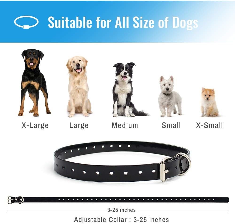 Adjustable for all size dogs:Adjustable training collar ranging from 14-25 inches; We guarantee that it will fit your small, medium, or large size dogs.