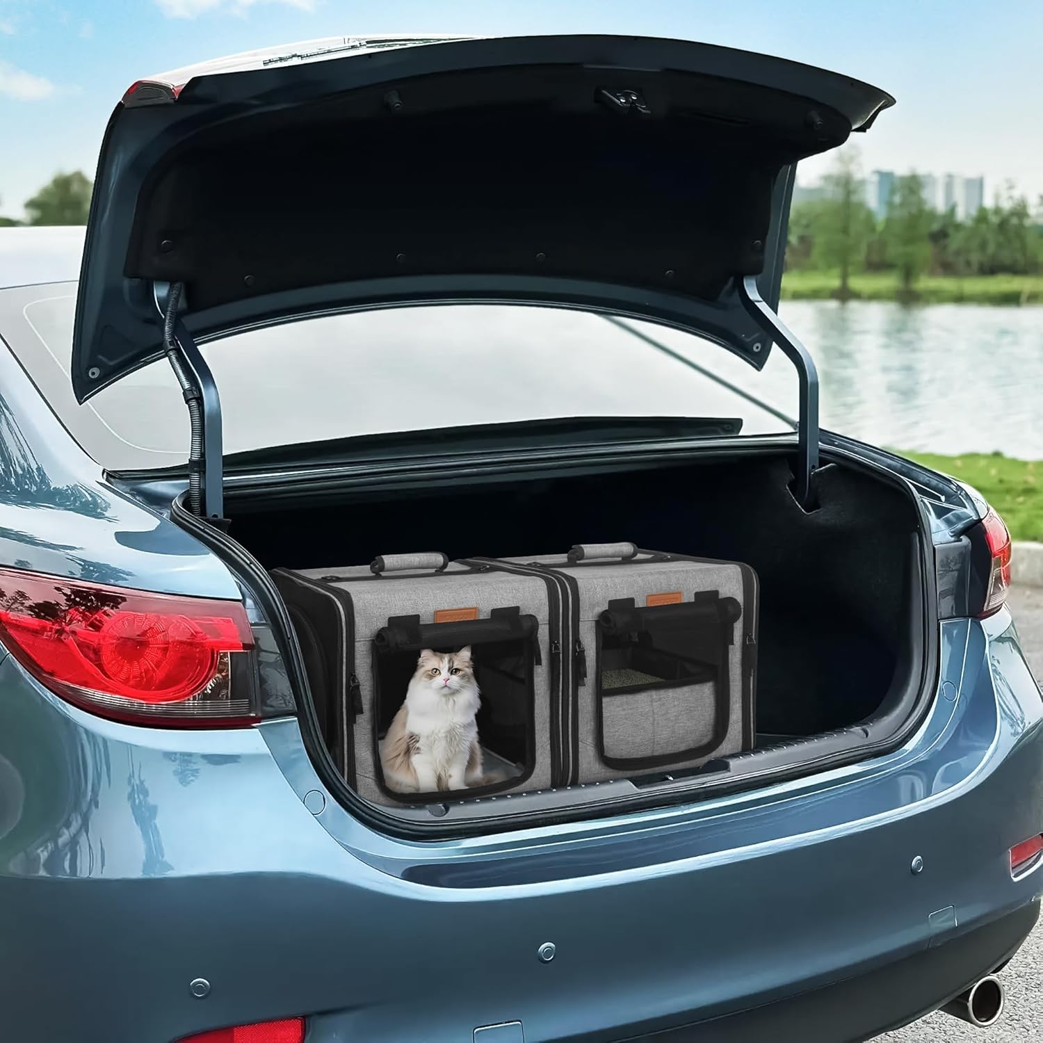 [A Great Gift for Your Friends Who Have Pets!] The entire product is made of waterproof and tear-resistant nylon fabric and breathable mesh, with a built-in strong fiberglass rod to ensure the firmness of the collapsible cat carrier. The cat car carrier is equipped with multiple safety devices to ensure the stability of the car cat travel carrier during car transportation