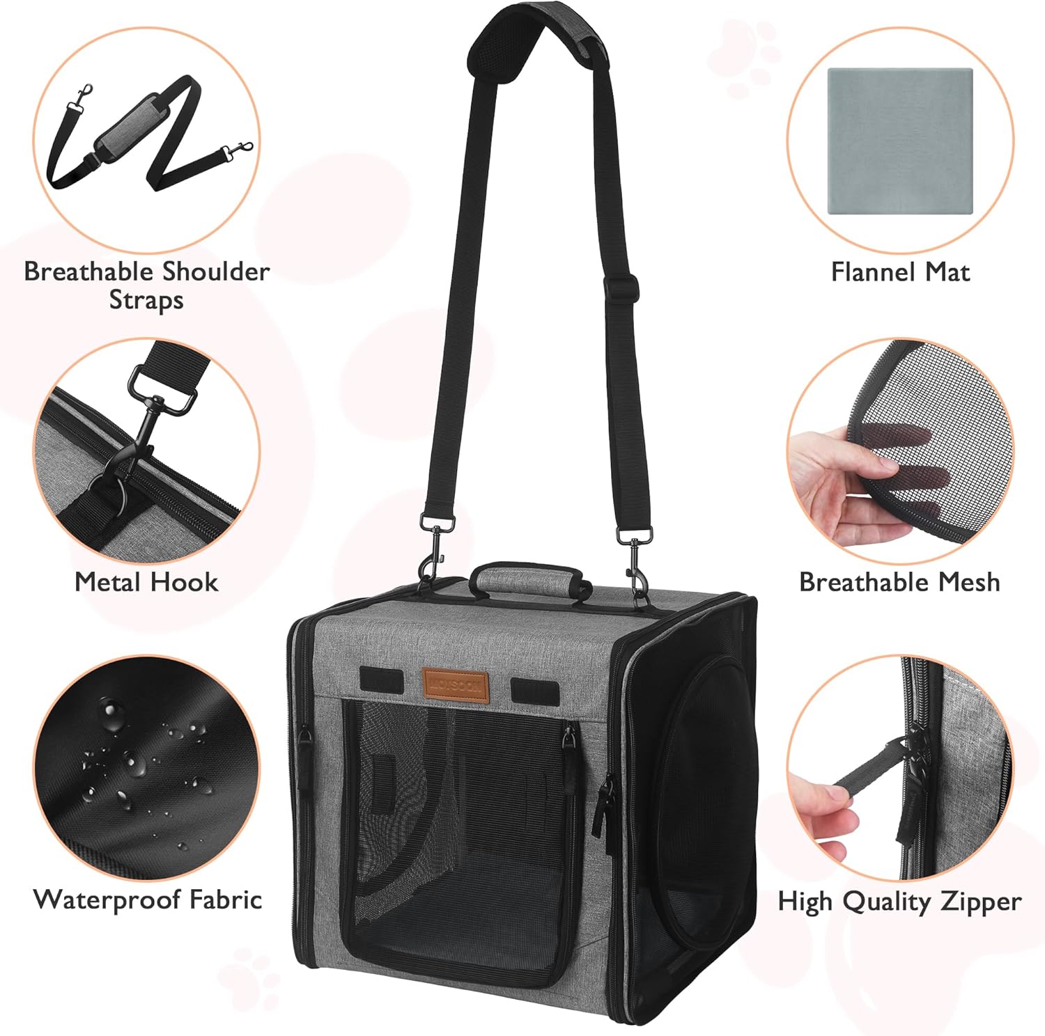 [Lightweight & Foldable, Makes Travel Easy and Comfortable] The entire product is made of lightweight nylon fabric and fiberglass rod. The soft cat carrier can be stored as a small bag at any time for easy travel