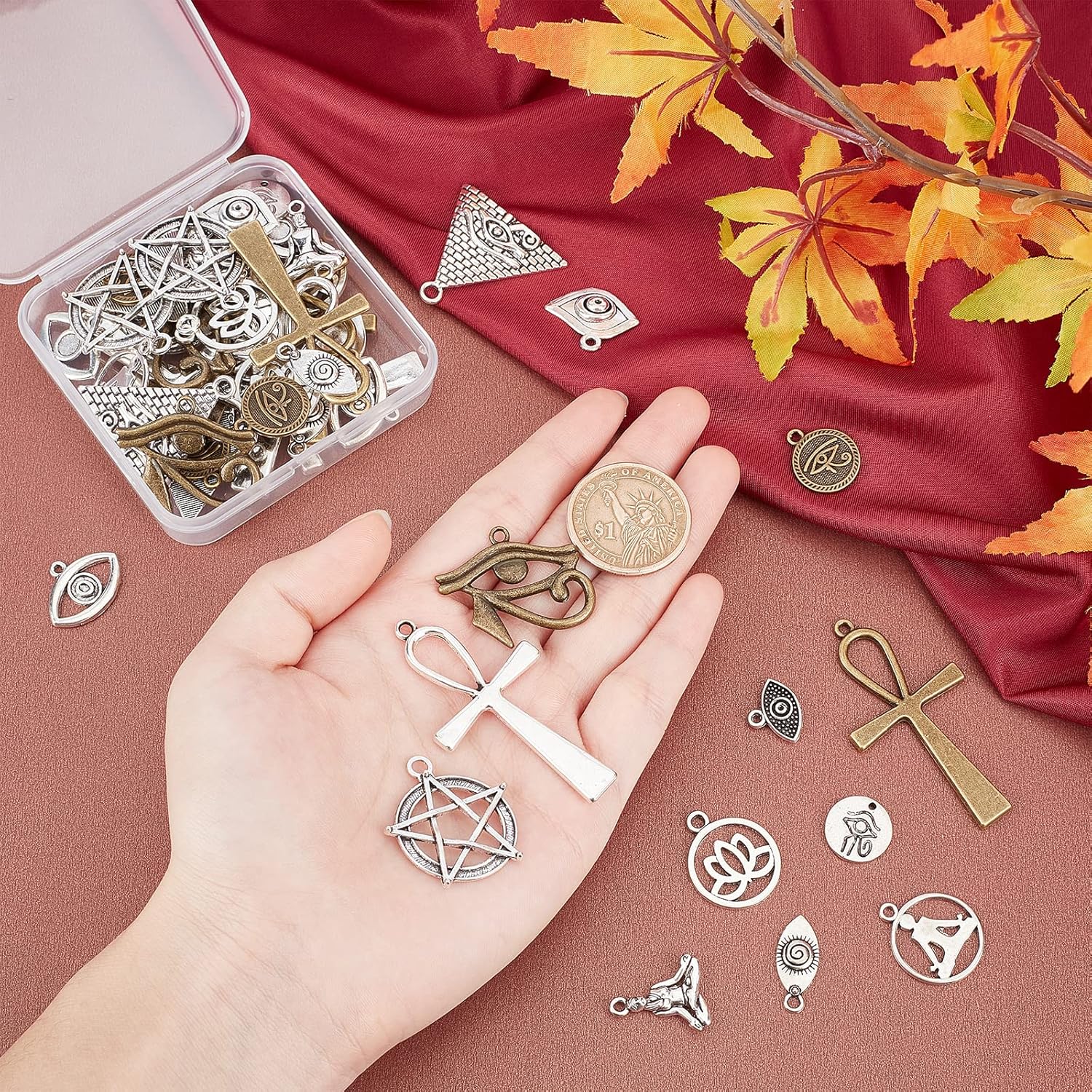 PH PandaHall 14 Styles Cross Charms, 56pcs Star of David Yoga Lotus Charms Evil Eye Horse Eye Egyptian Eye Pendant Tibetan Alloy Metal Dangle Charms for Craft DIY Necklace Bracelet Earrings Making