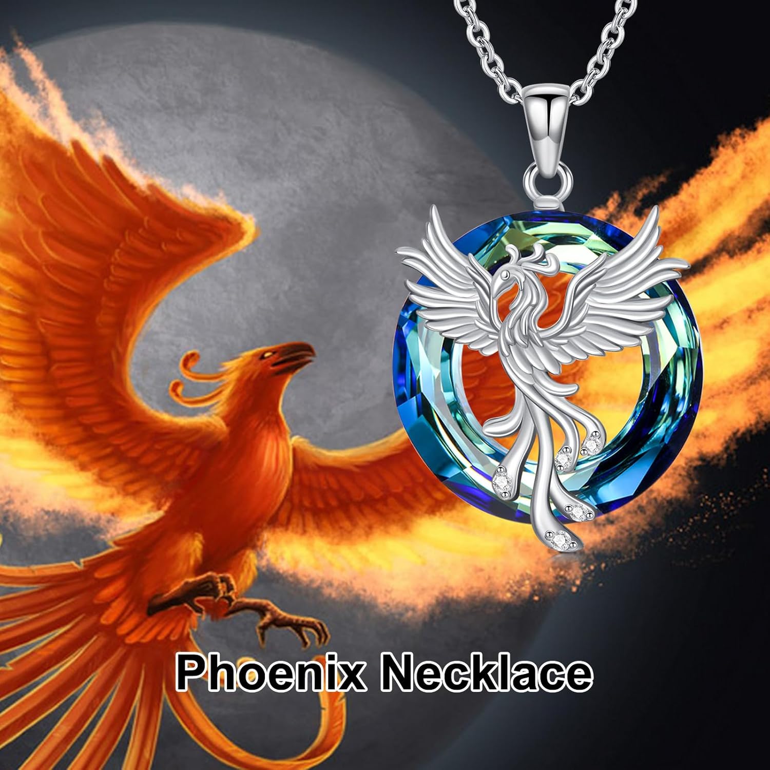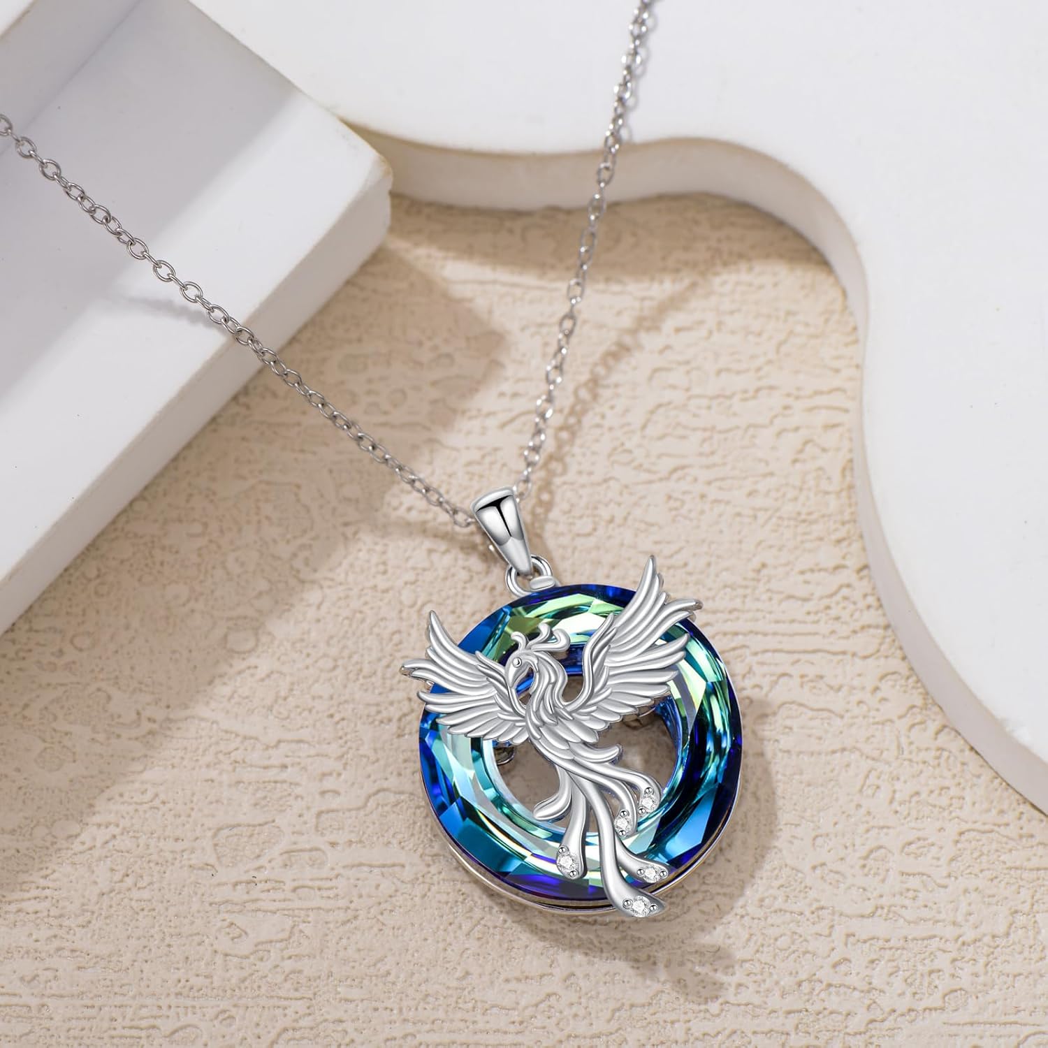 Phoenix Necklace for Women,925 Sterling Silver Phoenix Pendant Necklace with Crystal Rise From the Ashes for Mom Wife Girlfriend Jewelry Gifts