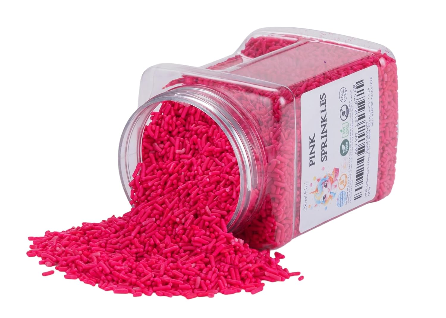 PINK SPRINKLES – Ebible Confectionery Accents, Gluten Free, Dairy Free, Egg Free, Soy Free, Nuts free, Kosher, Vegan, Fancy Sprinkles For Baking ,Decorating ,Cakes, Cupcakes, Cookies, Cake Topper, Candy Sprinkles, Jimmies, Sugar Shapes, Large, Bulk Candy, 1.5 LBS