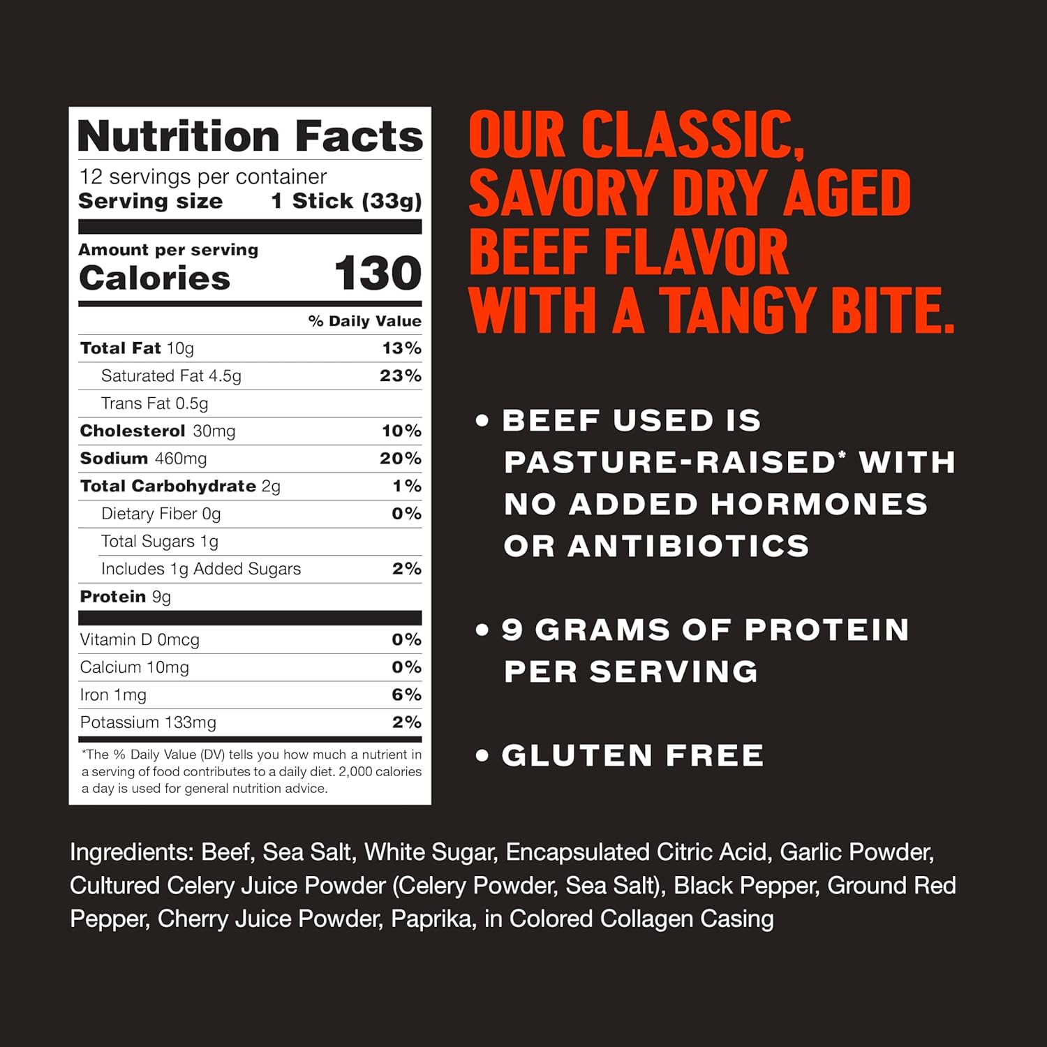 CHEF & BUTCHER OWNED: We’ve brought our years of experience in kitchens and behind the meat counter to craft the perfect beef stick. Full of dry aged flavor, from beef raised the right way. If it’s not raised right, it can’t be delicious.