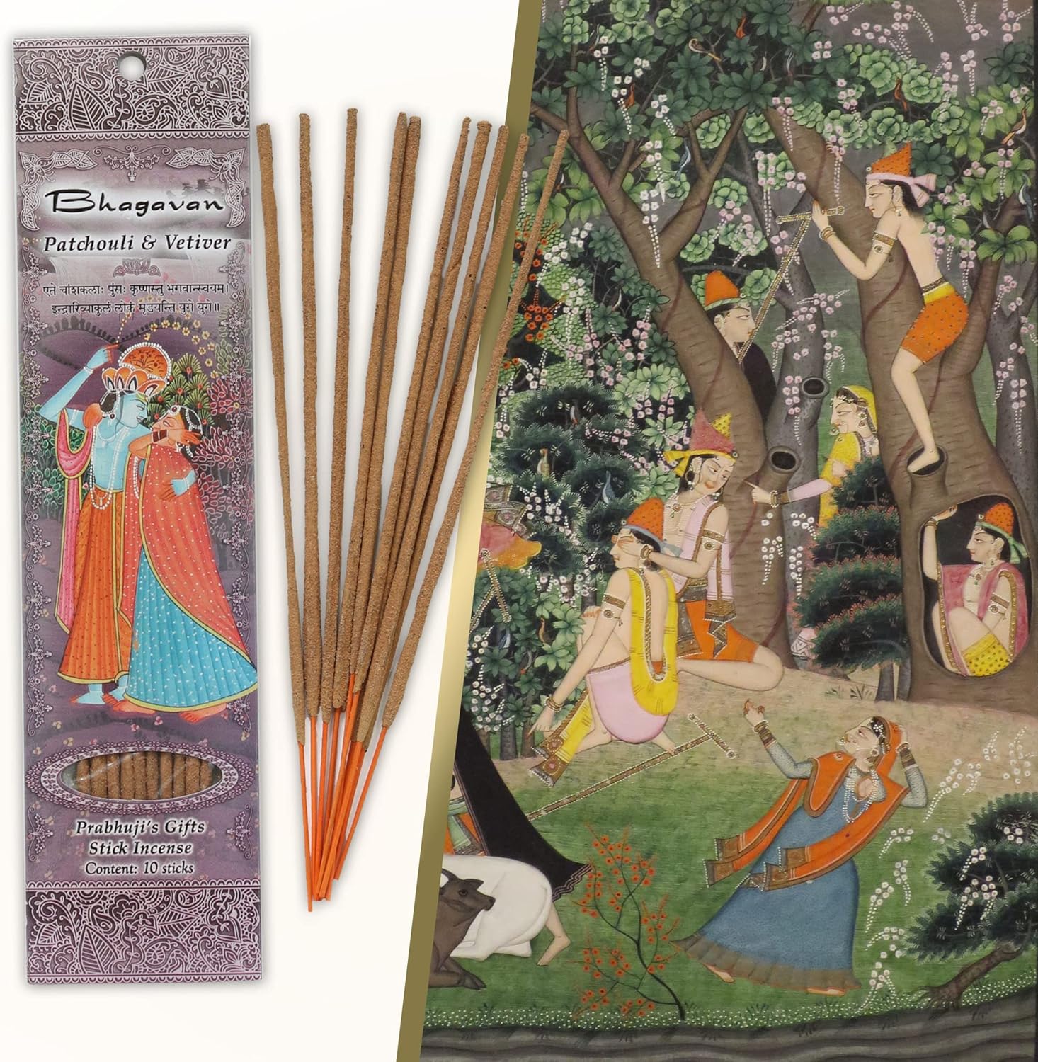 Prabhuji’s Gifts Bhagavan Hand-Rolled Spiritual Incense Sticks from India – Aromatic Sticks – for Meditation, Yoga, Relaxation, & Aromatherapy Incense – Patchouli and Vetiver – 3 Packs of 10 Sticks